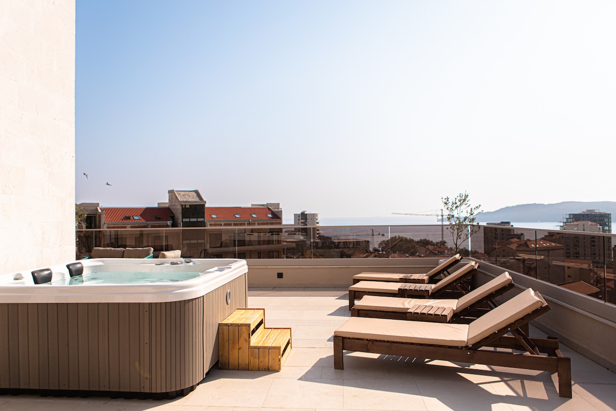Sea Point Apartments in Tivat offer accommodation in a modern, luxuriously decorated, newly built house near the coast. With its perfect location, Sea Point apartments offer their guests all the benefits of a small town on the sea – only a few hundred meters away from the beach, Sea Point is located not far from the city center and the luxurious zone of Porto Montenegro. The most spacious apartment in the offer can accommodate up to eight people (75m2).