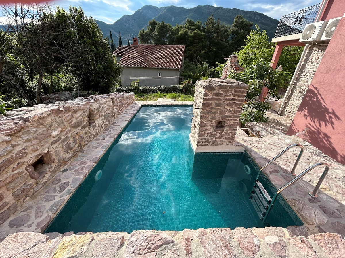 Welcome to our 300 years old, authentic stone fisherman house, with beautiful view and private beach. House is located in the old part of small fisherman's village called Krašići , laying on the one of the best spots in Boka Bay, where the most popular seaside towns are within easy reach. You have private terrace , private entrance and one of the best thing beautiful private beach, with sun beds, grill, outdoor shower and crystal clear water ... a great place for enjoy and relax.