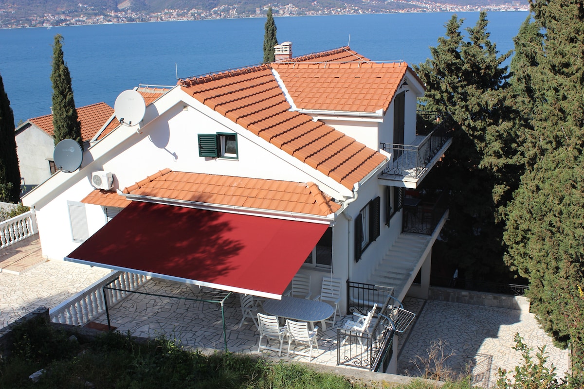 Fully furnished one-bedroom apartment (46m2) with a sea view, balcony, private parking, garden and stone BBQ. Fits 4 people. The apartment is located in a charming fisherman village - Bijela. Get to Herceg Novi in 20 min and to Kotor in 40 min, enjoying the benefits of staying in a peaceful location away from the crowds. The beach is just five min away on foot; the grocery store and bus station are just 3 min away. Inquire for car and bike rental. There is a well-behaved dog on the premise.
