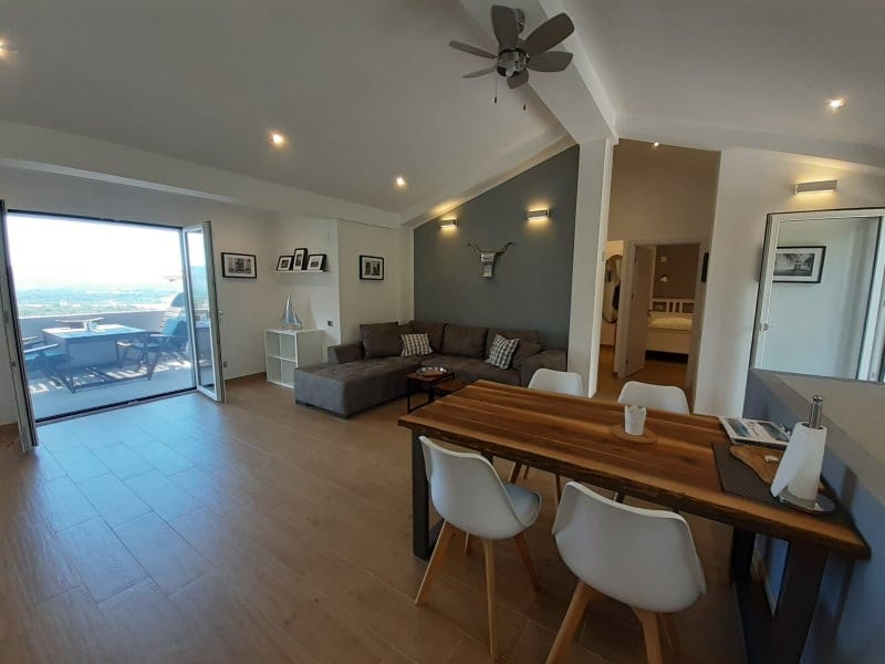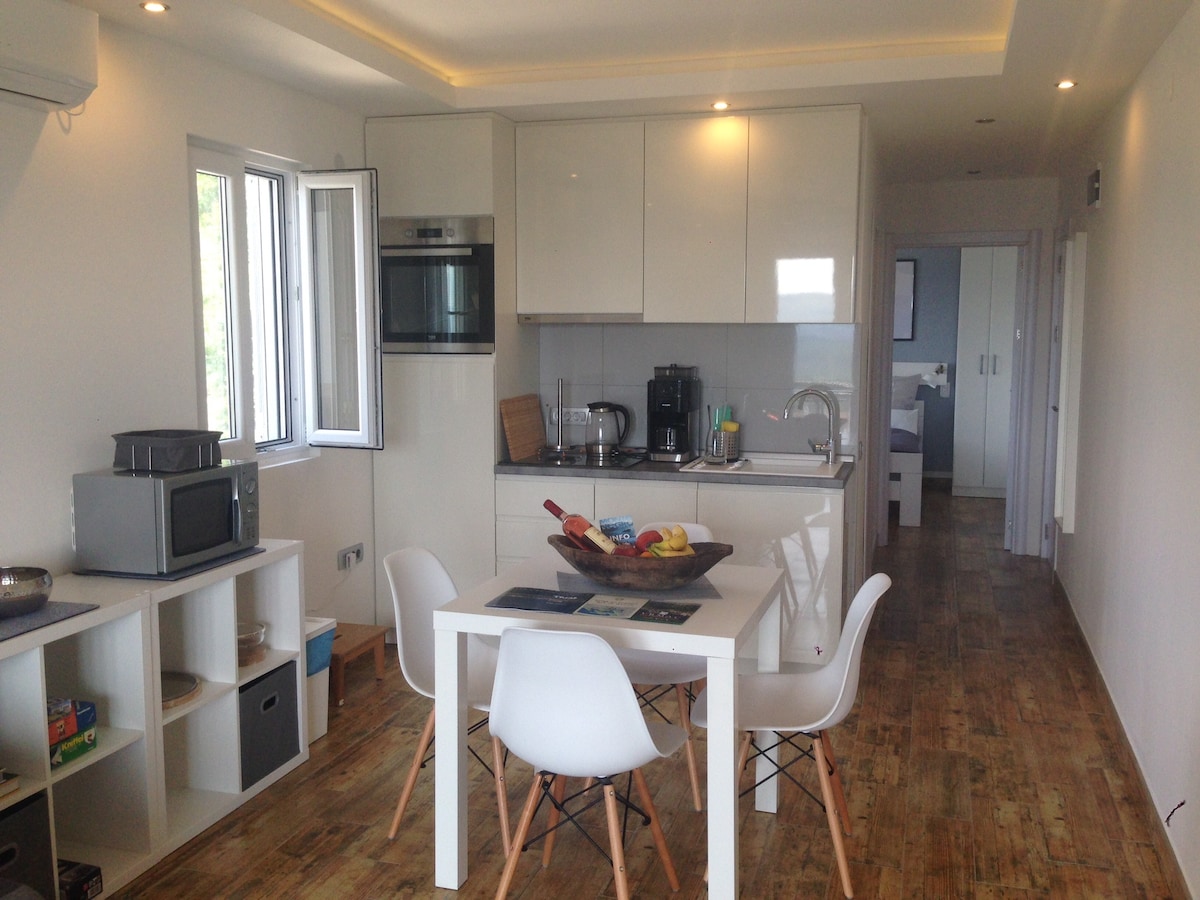 Dieses kleine, gemütliche Mio Monte Studio-Apartment von 2 deutschen Auswanderern, die Sie gerne mit Geheimtipps versorgen, ist perfekt für 2 Personen: hell, modern, nach deutschem Standard eingerichtet. Die Einraum-Wohnung verfügt über eine kleine Küche mit Sitzecke, ein großes Bett, ein separates Tageslicht-Duschbad, eine Terrasse mit Traumblick auf Berge und Meer und einen weiteren kleinen Balkon. Vor Ort Frühstücksservice und Freizeitangebot aus einer Hand (Kajak, Boot, etc.) buchbar.