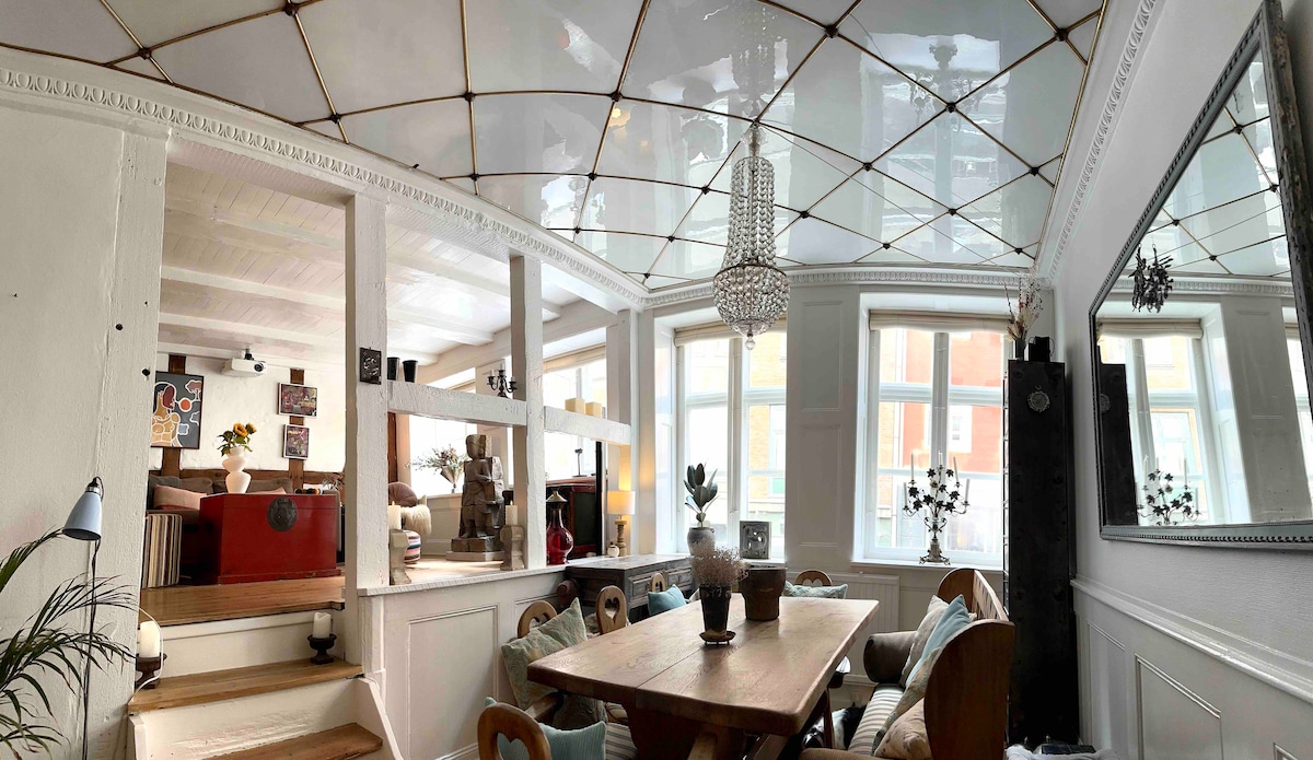 Enjoy Copenhagen from the historic center just a couple of hundred meters from everything. The most charming and cozy, preserved apartment with beams, original porcelain ceiling, chandelier and designer furniture - and even a 90” home cinema! Wake up to a beautiful yard view, in front of the wood stow and glance at the daily royal parade blasting music throughout the narrow streets. Designated work space next to the large windows. Free Wi-Fi and google home assisted speakers and lighting.