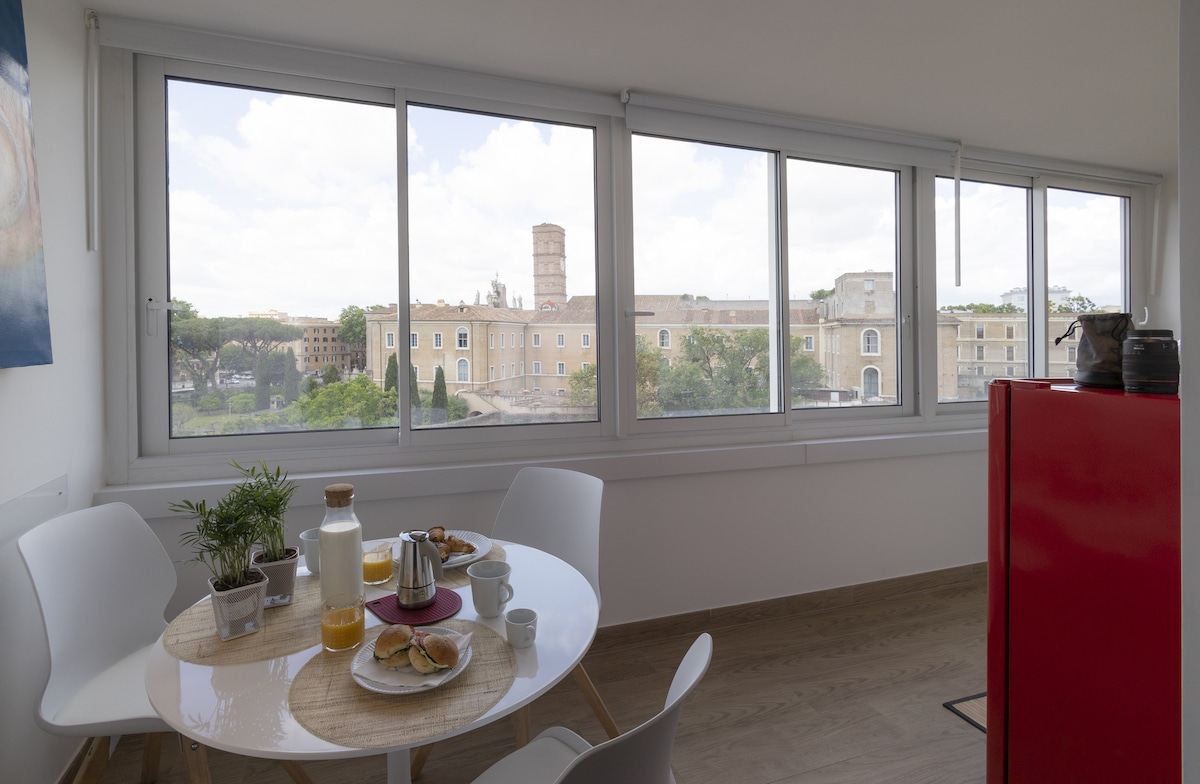 Lovely apartment in Piazza San Giovanni, in the center of Rome, it is possible to reach in 10/15 minutes historical places and monuments such as the Colosseum, Fori Imperiali, Piazza Venezia.The house is located on the second floor of an elegant and modern building, the house is composed of living room with kitchen area, sofa bed, bedroom, bathroom with large shower and a beautiful terrace.The environment is characterized by elegance, attention to detail and modern / vintage functional style.