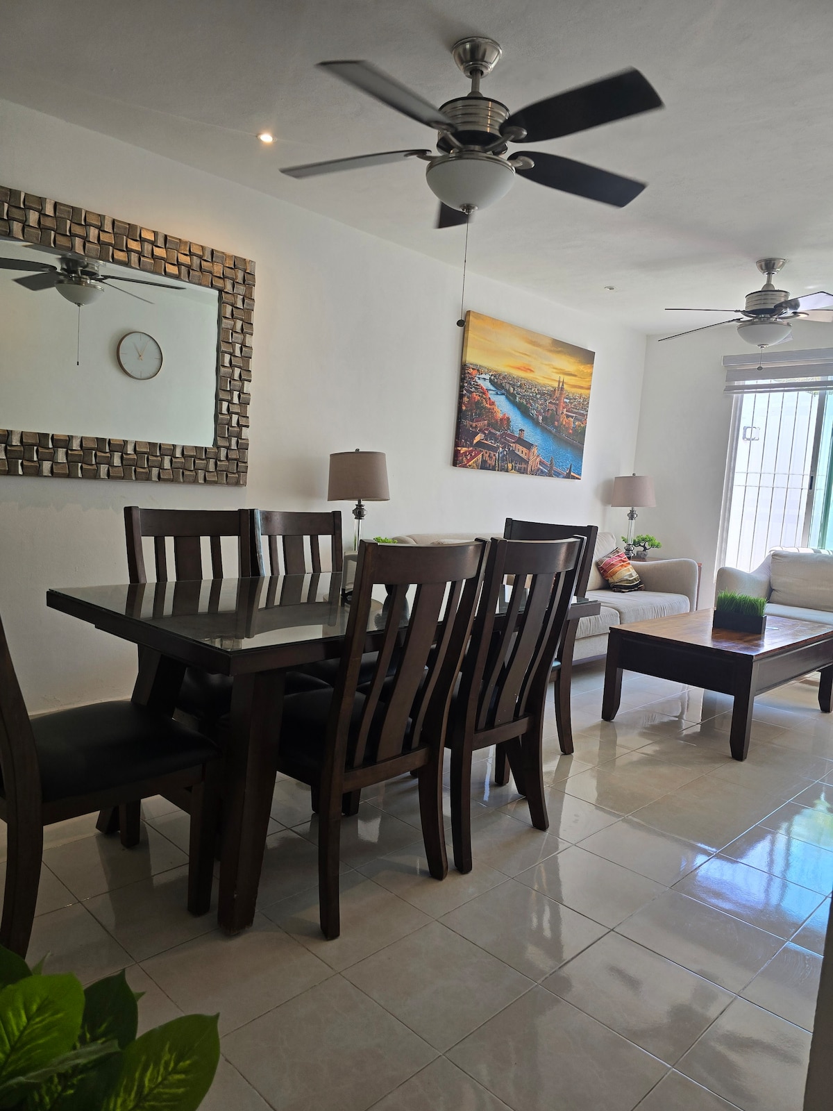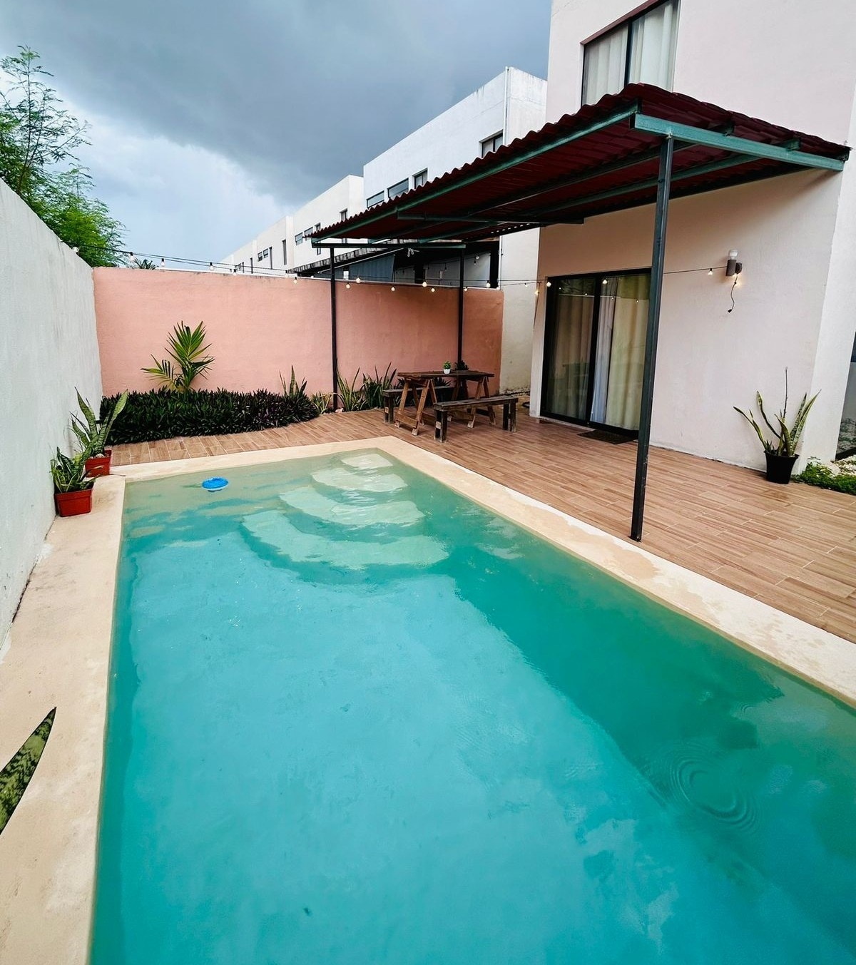 An exclusive house in Merida Yucatan, ideal to spend a few days with your family and friends. We invite you to enjoy the city with all the comforts and attention you need to rest. We have capacity for 4 people, who will stay in 2 bedrooms. The house is designed and prepared with love for your arrival, it has a kitchen, living room with Smart TV, dining room, swimming pool, bbq grill and terrace, besides enjoying the children's area of the condo. Hostpal assures you an unforgettable stay!