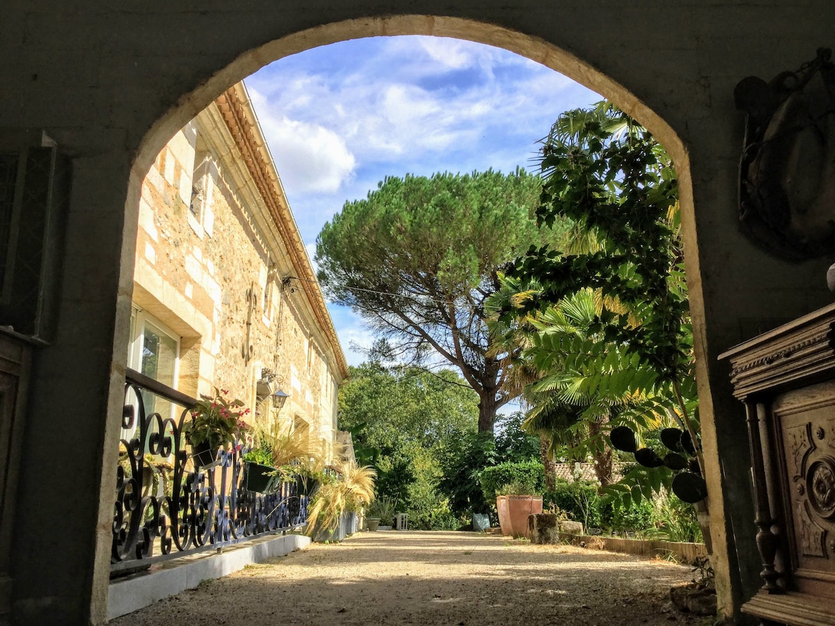 À 1 h de Bordeaux, à 25 mn de Saint Emilion, à 4 km de Cercoux, à l'orée des bois dans ce joli petit studio tout équipé ( entrée autonome (boîte à clé), coin cuisine et repas,avec les produits de 1ère nécessité (café, thé,sucre,huile, vinaigre, etc,...) et tout le linge de maison, vous profiterez d'un cadre paisible à côté des propriétaires qui seront à votre écoute. Situé dans une maison ancienne, il est naturellement climatisé pour la chaleur.