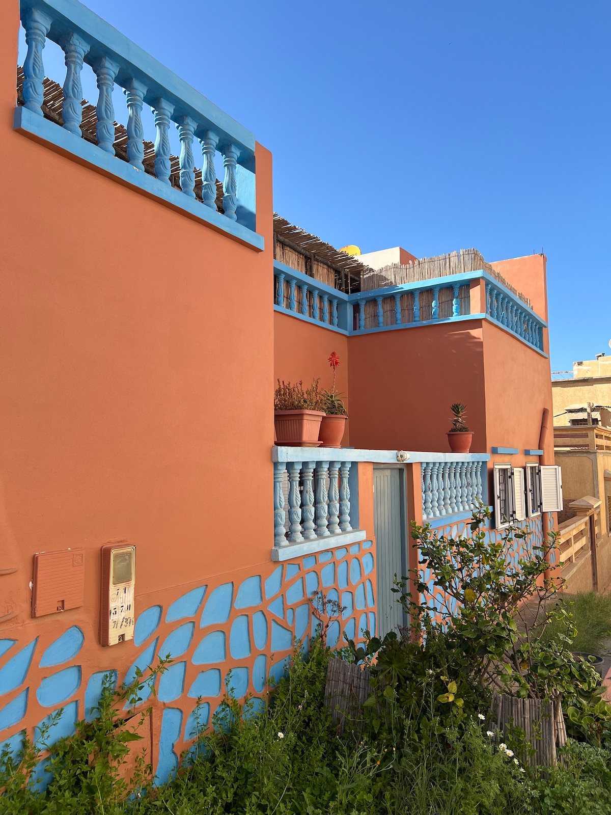 Welcome to our stunning 2-bedroom house located in the beautiful Club Evasion, Mirleft, Morocco. Nestled just a short walk from the beach, this charming retreat offers a rooftop terrace with panoramic ocean views, making it the perfect getaway for couples, families, or friends seeking tranquility by the sea. Enjoy modern comforts, stylish decor, and the unique charm of coastal Morocco in this peaceful oasis.