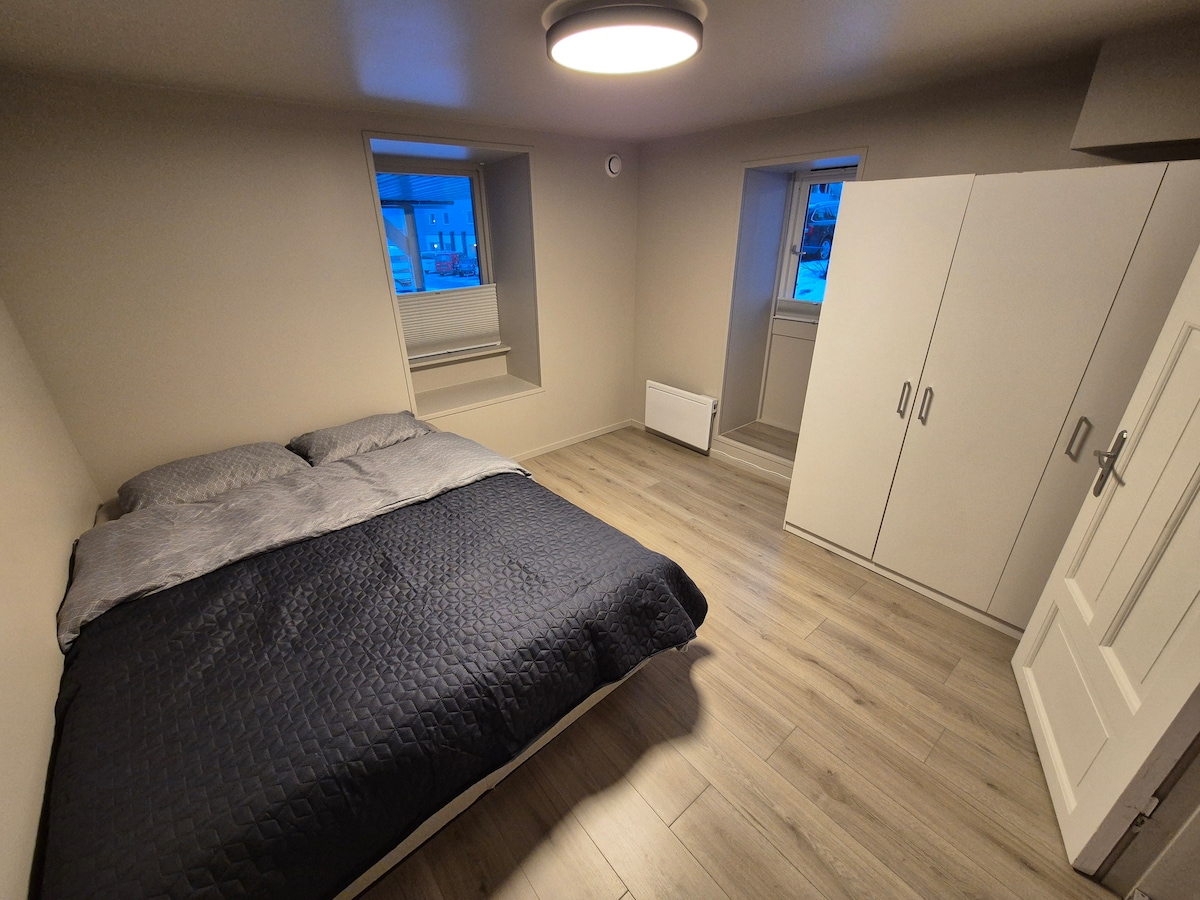 Studio apartment separate entrance. Windows facing a garden and the midnightsun/ sea / northern lights. Gardentable, garden chairs. Doublebed 150cm High speed wi-fi, cable tv. Kitchenette, two plates stove. Tea & Coffee and BREAKFAST included. Microwave, Fridge/freezer necessary equipment. Dinnertable for two. Bathroom with window. Washing machine + dryer. Located in central Narvik in a quiet part of town. 9min walk city center, railwaystation and flight bus. 3min walk to a small beach.