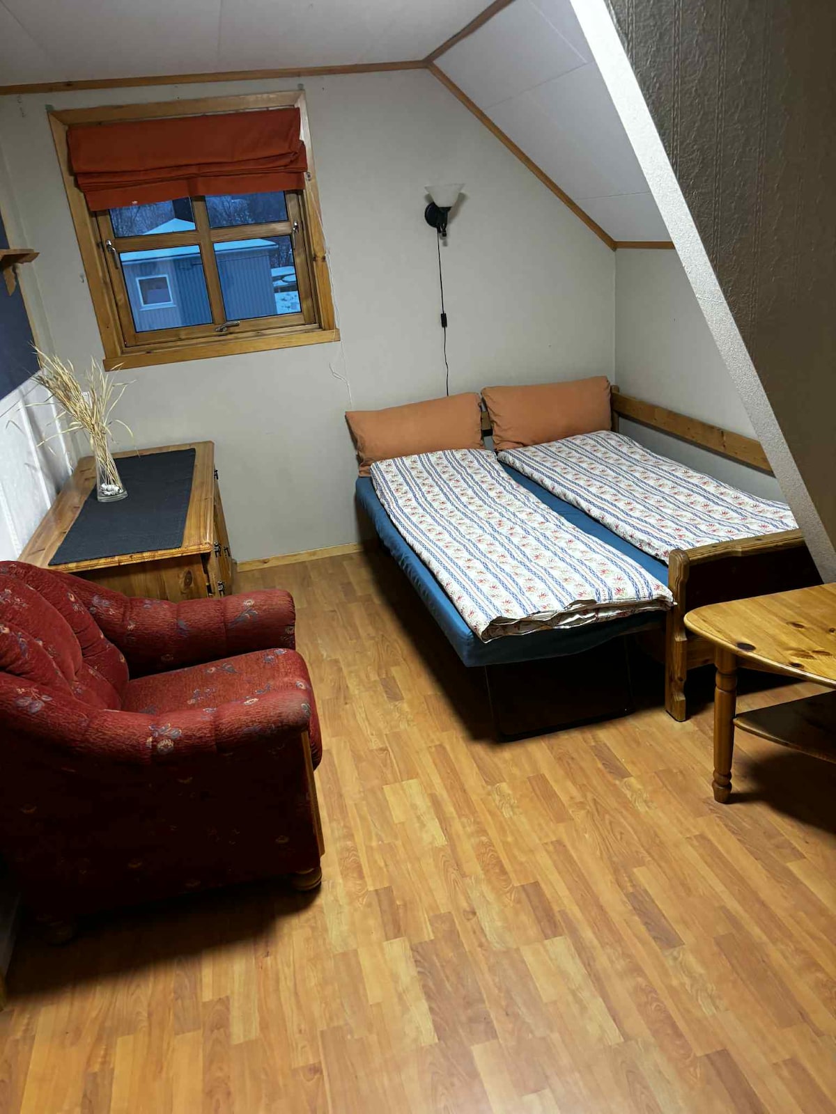 Studio apartment separate entrance. Windows facing a garden and the midnightsun/ sea / northern lights. Gardentable, garden chairs. Doublebed 150cm High speed wi-fi, cable tv. Kitchenette, two plates stove. Tea & Coffee and BREAKFAST included. Microwave, Fridge/freezer necessary equipment. Dinnertable for two. Bathroom with window. Washing machine + dryer. Located in central Narvik in a quiet part of town. 9min walk city center, railwaystation and flight bus. 3min walk to a small beach.