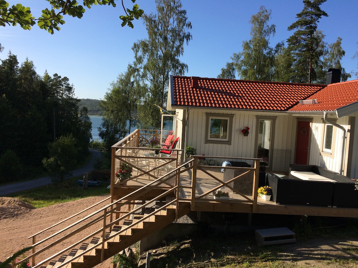 Eget hus med trädgård, stor uteplats och 400 m till havet och liten badplats. Gott om sängplatser och generösa gemensamhetsytor. Två vanliga sovrum plus ett mindre sovrum i själva bostadsvåningen. Dessa sovrum tar max 2+4+2 gäster. I källarplan, med egen ingång, finns ett större sovrum med två enkelsängar och en 140 cm säng. Detta sovrum kan av vissa upplevas som fuktigt. Badrum med bastu, dusch och toalett. Extra toalett. Till huset hör två havskajaker för två personer per kajak.