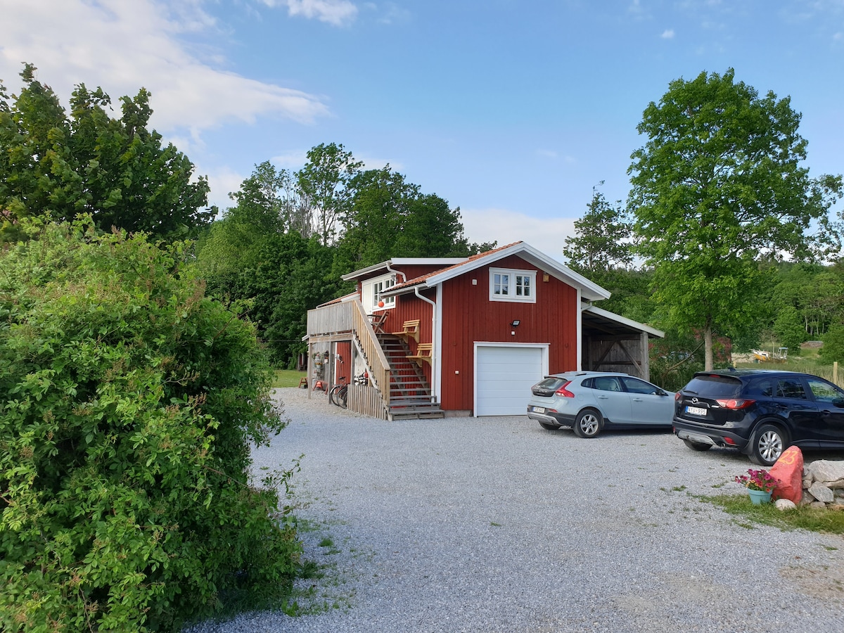 Välkommen till vårt boende, bara 100 m från havet! Här erbjuds ett nybyggt attefallshus med panoramautsikt över det glittrande blåa havet. Boendet är modernt inrett och fyllt med naturligt ljus. Det är den perfekta platsen för avkoppling och strandaktiviteter. På det privata soldäcket kan du njuta av solen, bada i bubbelpoolen eller grilla kvällens middag. Utforska den omkringliggande naturen eller ta stigen 100 m ner till Hakefjorden för ett svalkande bad. Boka nu och skapa minnen för livet!