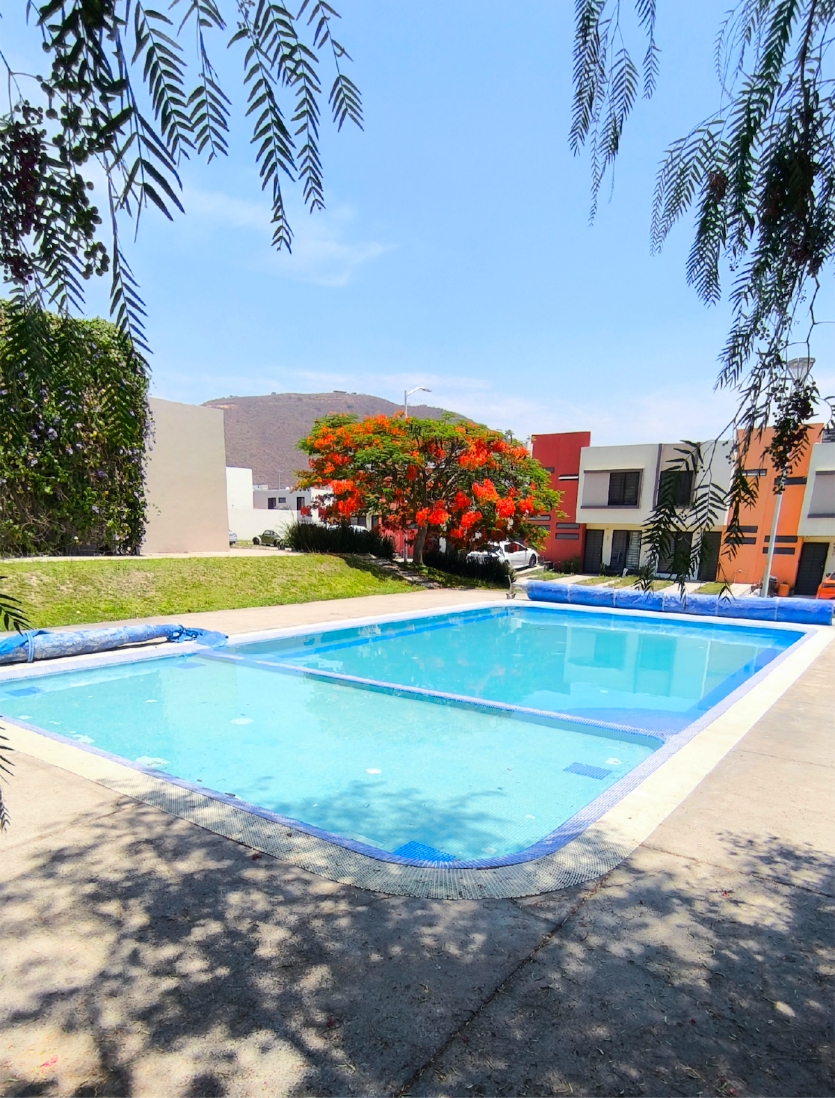 Relájate con toda la familia en este alojamiento donde la tranquilidad se respira, podrás disfrutar de todas las comodidades y amenidades que deseas. Contamos con 3 habitaciones, 2 en planta alta con closet y 1 en planta baja. 1 baño arriba y medio abajo. Cocina equipada para tu comodidad. Comedor amplio para disfrutar en familia. Sala con TV. Patio trasero con lavadora. Cochera techada para 1 auto vehículo grande o 2 pequeños. Alberca en un ambiente familiar (alberca compartida)
