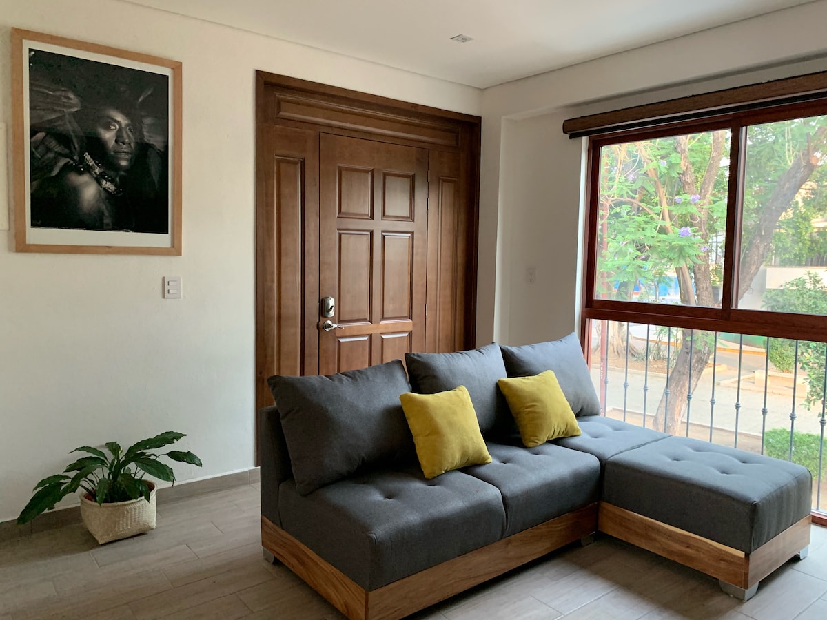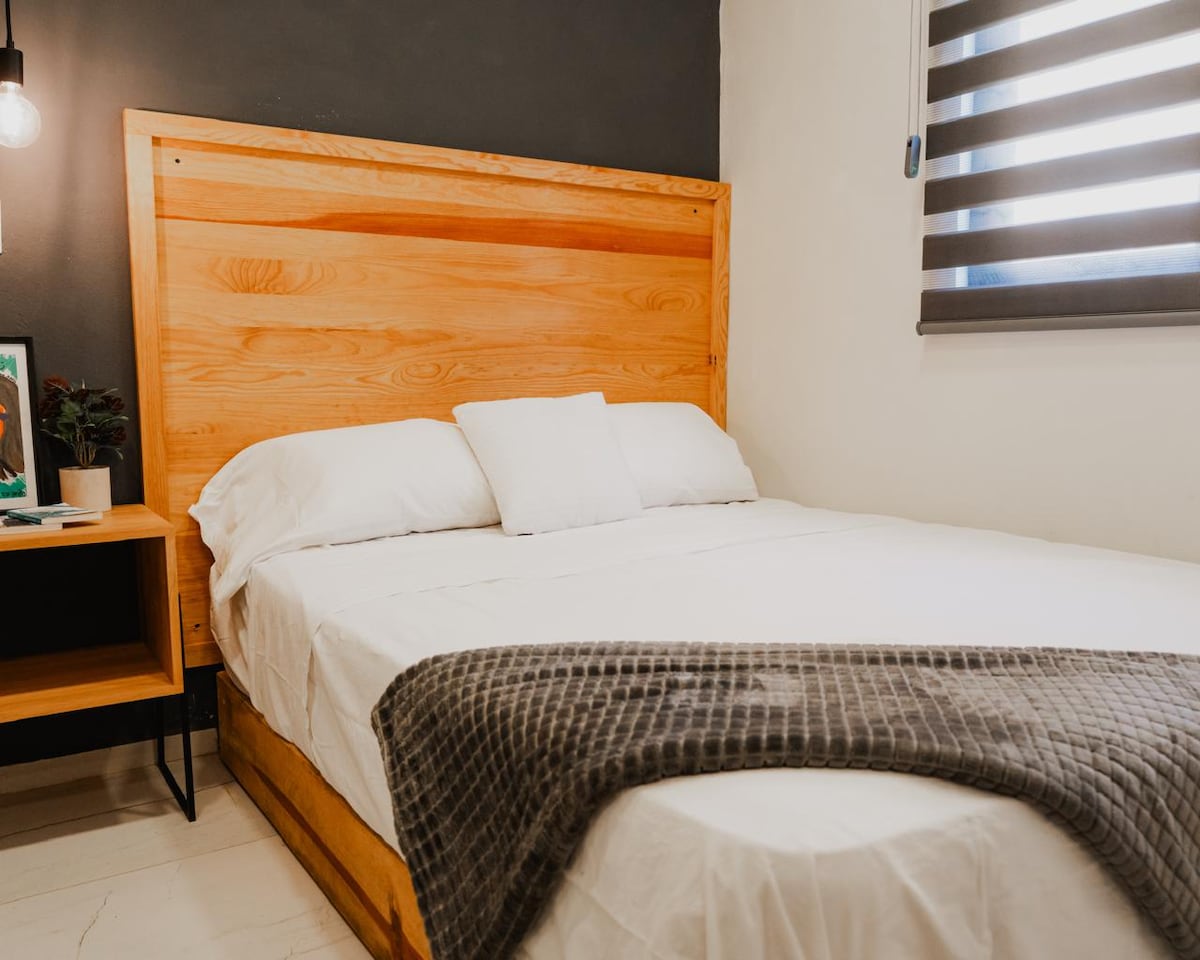 Disfruta de la sencillez de este alojamiento tranquilo y céntrico. Departamento A en planta baja, totalmente nuevo, con una hermosa decoración y diseño. Cuenta con una ubicación privilegiada, dirígete al centro de la ciudad y andador turístico a pie a solo 8 cuadras del alojamiento, centro de convenciones, museos, tiendas de artesanías, mercados, restaurantes, etc.