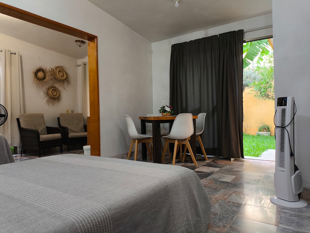 Refúgiate del bullicio del centro en este iluminado espacio rodeado de vegetación que está a tan sólo 10 minutos en auto del centro. Ubicado en la zona residencial por excelencia de Oaxaca que se caracteriza por ser una zona tranquila, agradable para caminar y con pequeños comercios cercanos. Disfruta de un café por la mañana en su agradable jardín. Se cuenta con el servicio de un delicioso desayuno con costo bajo demanda.