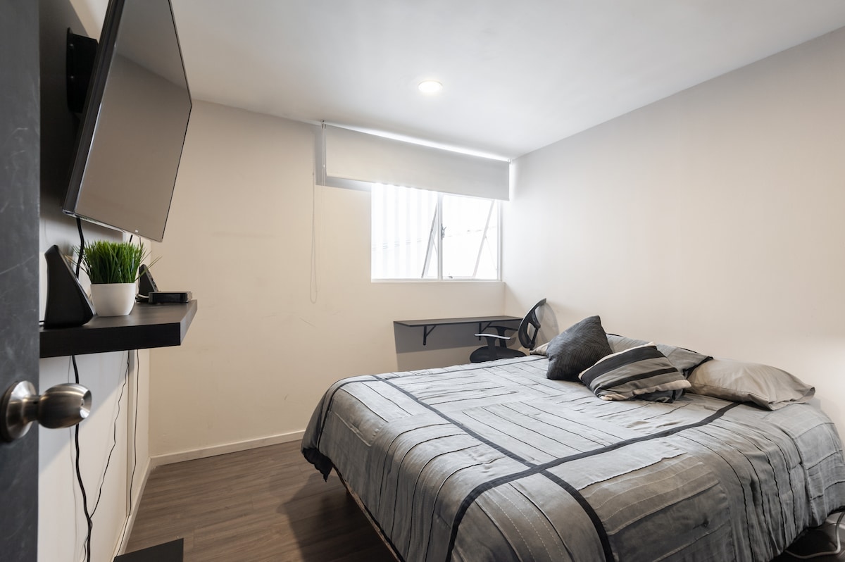 Welcome to your practical and cozy space in Mexico City! Discover our Studio at NIU Reforma, designed to combine comfort, functionality, and style. Every morning, enjoy a complimentary continental breakfast on our rooftop as you prepare to explore the city. Staying at NIU Reforma means being just a 5-minute walk from Paseo de la Reforma. The Insurgentes Metrobús and Reforma 222 Mall are just a minute away.