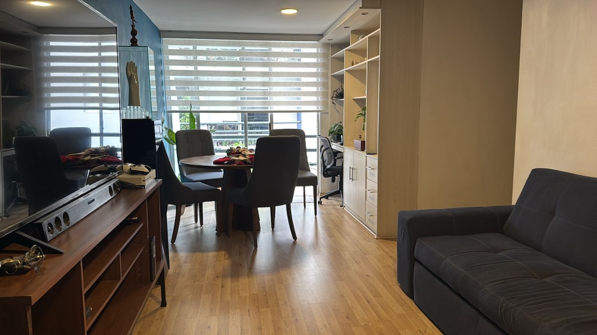 El bonito y recién estrenado departamento está totalmente equipado y tiene acabados, diseño y muebles de excelente calidad, techos de doble altura, lo cual lo hace muy acogedor, amplio y luminoso.
