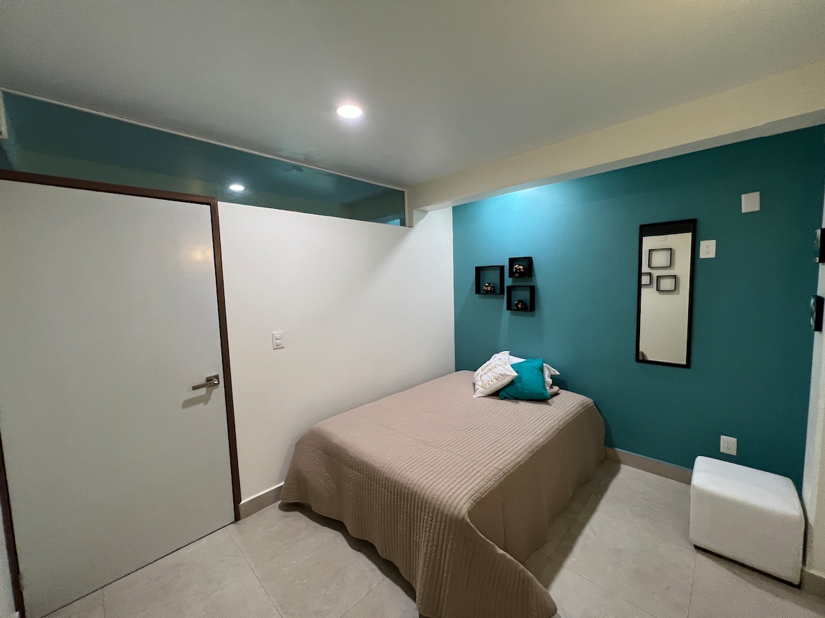 Un espacio muy tranquilo, disponible hasta para dos personas. Puedes utilizar TV con Netflix y de pago. Totalmente independiente. Dispondrás del alojamiento entero solo para ti, cuenta con todos los servicios, calentador automático, tv de paga. Nos encanta hacer sentir especiales a nuestros huéspedes Si necesitas estacionamiento se puede dejar en la calle o dependiendo el tamaño meterlo únicamente por las noches y sujeto a disponibilidad sin excepción. Importante no fumar dentro.