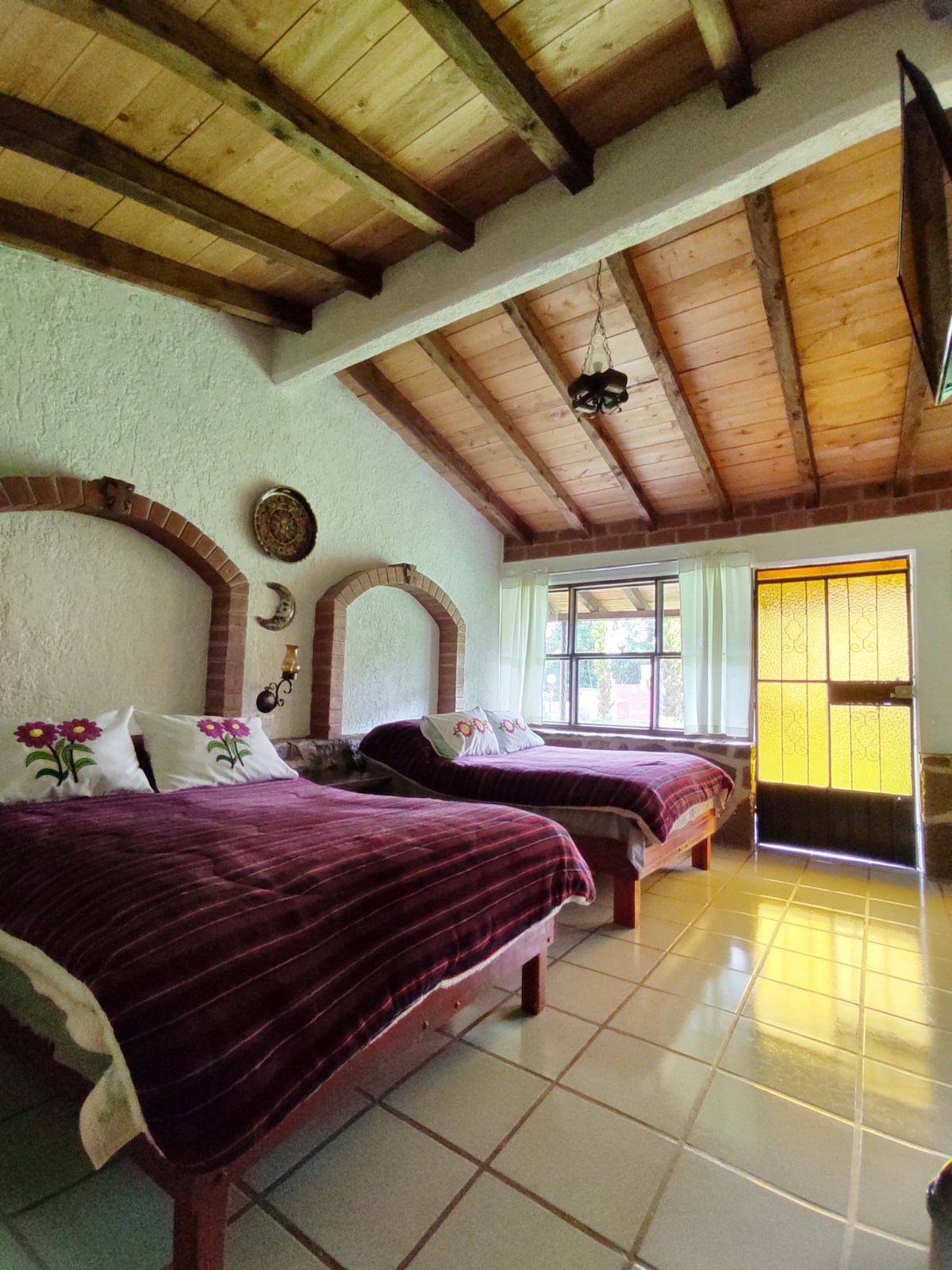 Hospédate en Casa de Campo Veta Corona, un lugar acogedor rodeado de bosque y tranquilidad a solo dos minutos del centro. Disfruta del canto de los pájaros, observa ardillas juguetonas, contempla hermosas vistas naturales y realiza caminatas al aire libre en un ambiente de total serenidad. Además, contamos con estacionamiento gratuito. Ven vive la experiencia de Tlalpujahua y déjate envolver por su encanto en Casa de Campo Veta Corona, tu refugio perfecto entre la naturaleza y la tradición