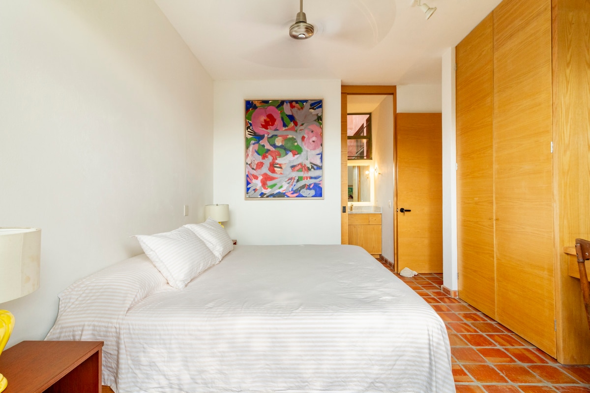 Bienvenido a nuestro moderno y acogedor apartamento en el corazón de Tlaquepaque. Este espacio cuenta con dos habitaciones, la principal con aire acondicionado y cama queen size, y la secundaria con dos camas individuales, cuarto de lavado con lavadora y secadora, baño privado y una cocina totalmente equipada. La decoración es elegante y acogedora, con toques de diseño en todas las áreas. Siéntete como en casa mientras disfrutas de todas las comodidades modernas, WiFi de alta velocidad. smartv.