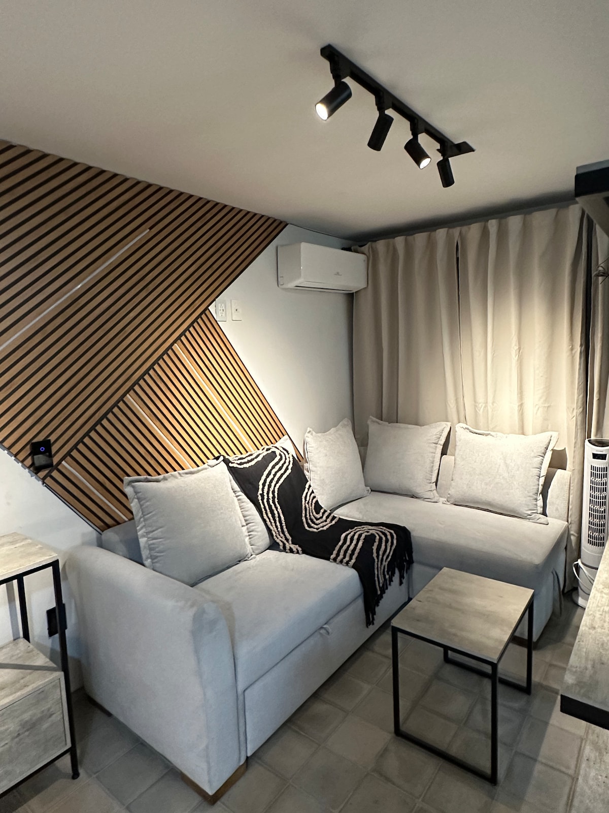En nuestro alojamiento podrás disfrutar de un equipamiento en muebles muy cómodos , amenidades como alexa, Smart TV con plataformas como netflix, disney, max. Aire acondicionado, cocina con horno de microondas, licuadora, cafetera y utensilios de cocina. nuestra ubicación nos encontramos a unas cuadras de CODE paradero, Plaza forum, Sams Club, Gimnasios, mercado, iglesias, tiendas de interés social, consultorios médicos.