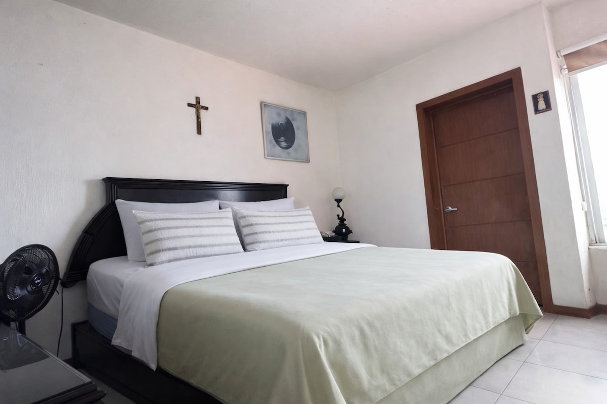 - Acogedor y exclusivo estudio ejecutivo con cama queen-size, escritorio y aire acondicionado. - Balcón para tomar aire fresco. - Cocina equipada. - Ingreso con cerradura inteligente y clave personalizada y exclusiva para cada huésped. - Rooftop panorámico con restaurante en el nivel 9. - Sala de juntas equipada para reuniones profesionales (consultar disponibilidad). - Acceso 24/7 con código personalizado. IMPORTANTE: No contamos con estacionamiento privado dentro de la propiedad.