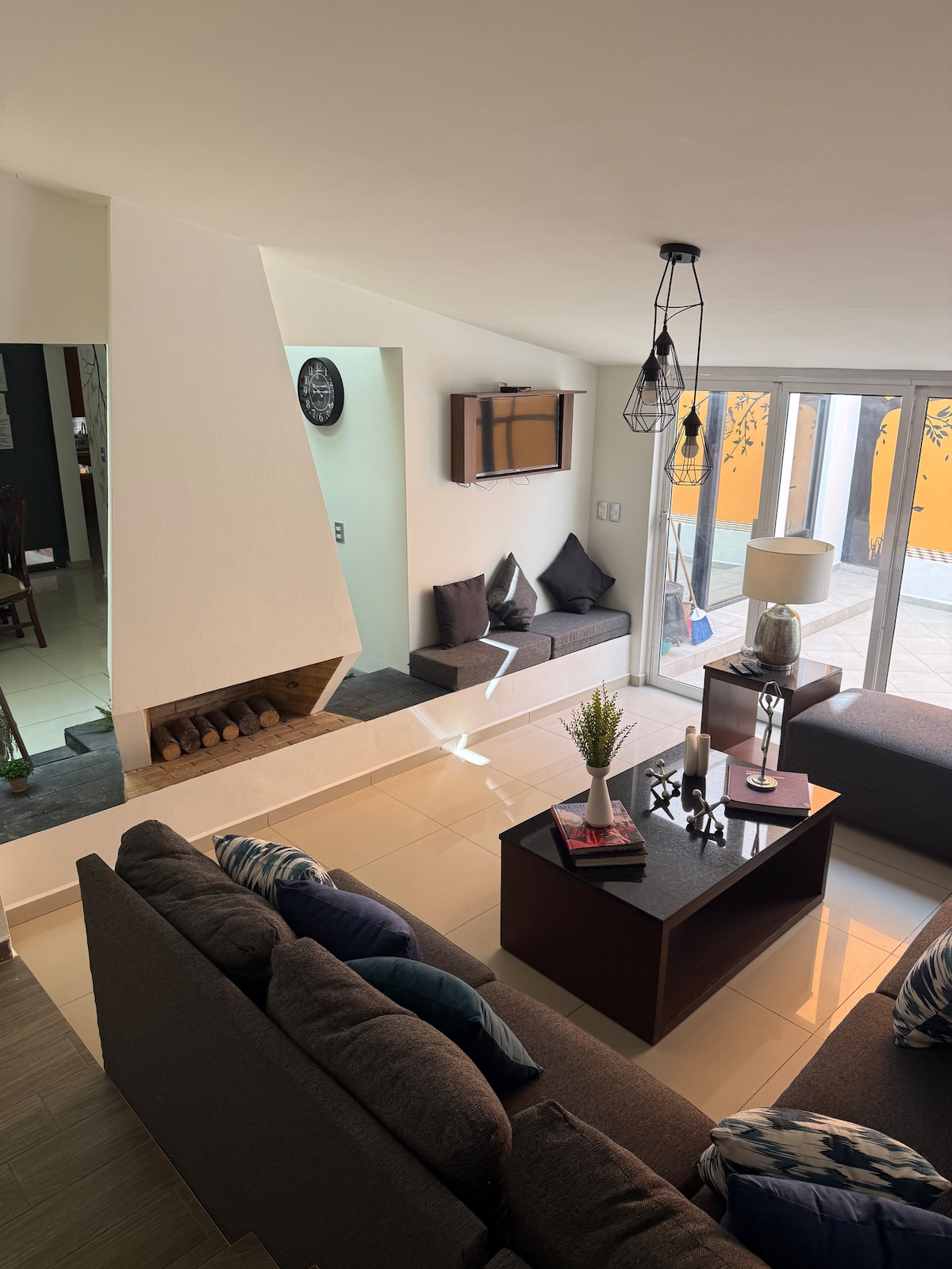 Casa tipo Hacienda Con chimenea, un área de jardín muy amplio, donde sentiras La Paz de de la naturaleza, y podrás disfrutar de tardes con tus hijos y o carne asada con amigos y los niños pueden jugar y correr También contamos con alberca de 5 x4 tibia en meses cálidos fría en invierno WiFi, balcón con hamaca para disfrutar la vista Ideal para desconectarte de la ciudad. si estás cansado o estresado es el lugar indicado Estamos cerca de la barranca y zoológico de Guadalajara