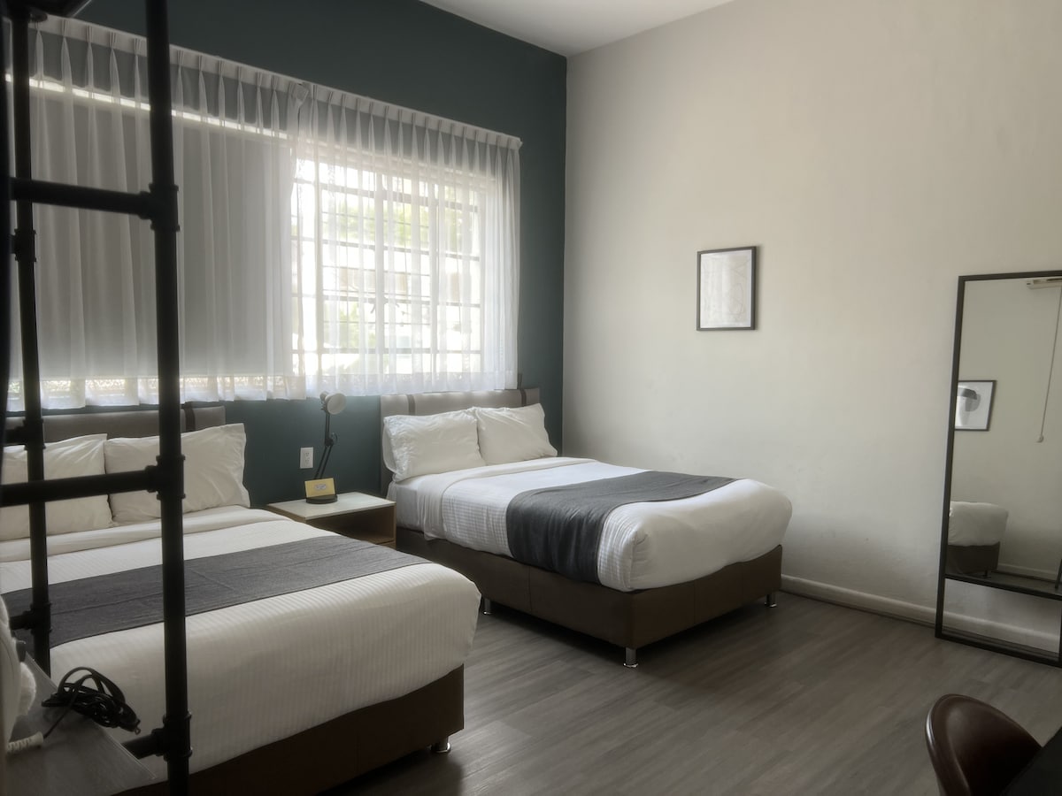 Are you here for work or a layover? At Mexhicco33, we've designed a space where harmony and design blend seamlessly with the functionality you need. Enjoy natural light, relaxing gardens, and the tranquility necessary to recharge before your next activity. What makes us your best choice: ✔ Unbeatable Location: Strategic proximity to the airport. ✔ Connectivity: Premium Wi-Fi. ✔ True Rest: Rooms designed for deep, restorative sleep in a harmonious environment.