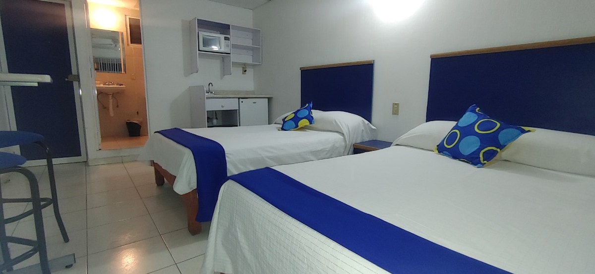 Este hospedaje es una agradable habitación tipo Hotel. Disfruta del fácil acceso a tan solo unos pasos encontrarás cafeterías, restaurantes, bares y tiendas desde este cómodo lugar para hospedarte en el Corazón de Zapopan Centro. Estamos muy cerca de: Línea 3 Tren ligero a 4 cuadras ISSSTE Hospital Valentin Gómez a 4 cuadras. Basilica de Zapopan a 3 Cuadras Estadio Charros 1.5 km km Auditorio Telmex 1.8 km Calle 2 a 2.5 km Conjunto Santander 2.8 km Andares a 5 km NO cuenta con estacionamiento.