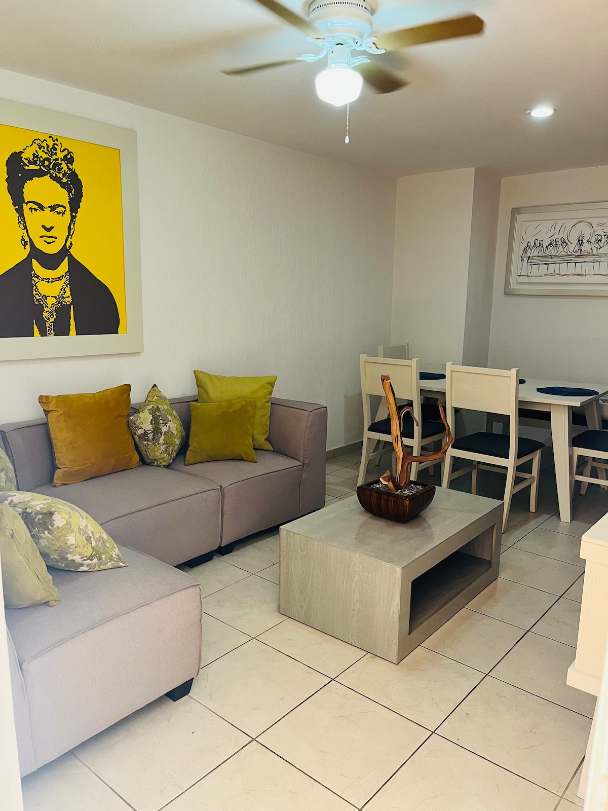 Luxurious and beautiful apartment with art deco design and furniture, relax and enjoy of the view because its in a 9th floor, it has amenities such as a scenic pool, gym, panoramic roof top, social room, bbq grills, security and elevators. The apartment has one room with a queen size bed, one full bathroom, laundry room, full kitchen, refrigerator with ice machine and cold water dispenser. We provide 2 towels for shower and 2 towels for the pool. We also offer tours to city and magic towns.