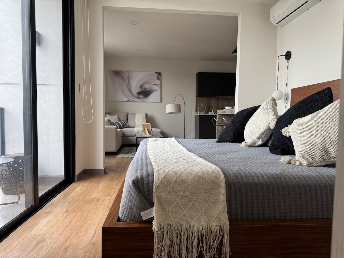 -22nd floor swimming pool -Beautiful gym with city views -Fully equipped for long stays -Parking available (at additional cost) - Housekeeping service: Once a week for reservation of +7 nights This deluxe studio with a balcony has everything you'll need for your stay. Located in a brand-new luxury tower in the Providencia neighborhood, near the Midtown Jalisco shopping mall.
