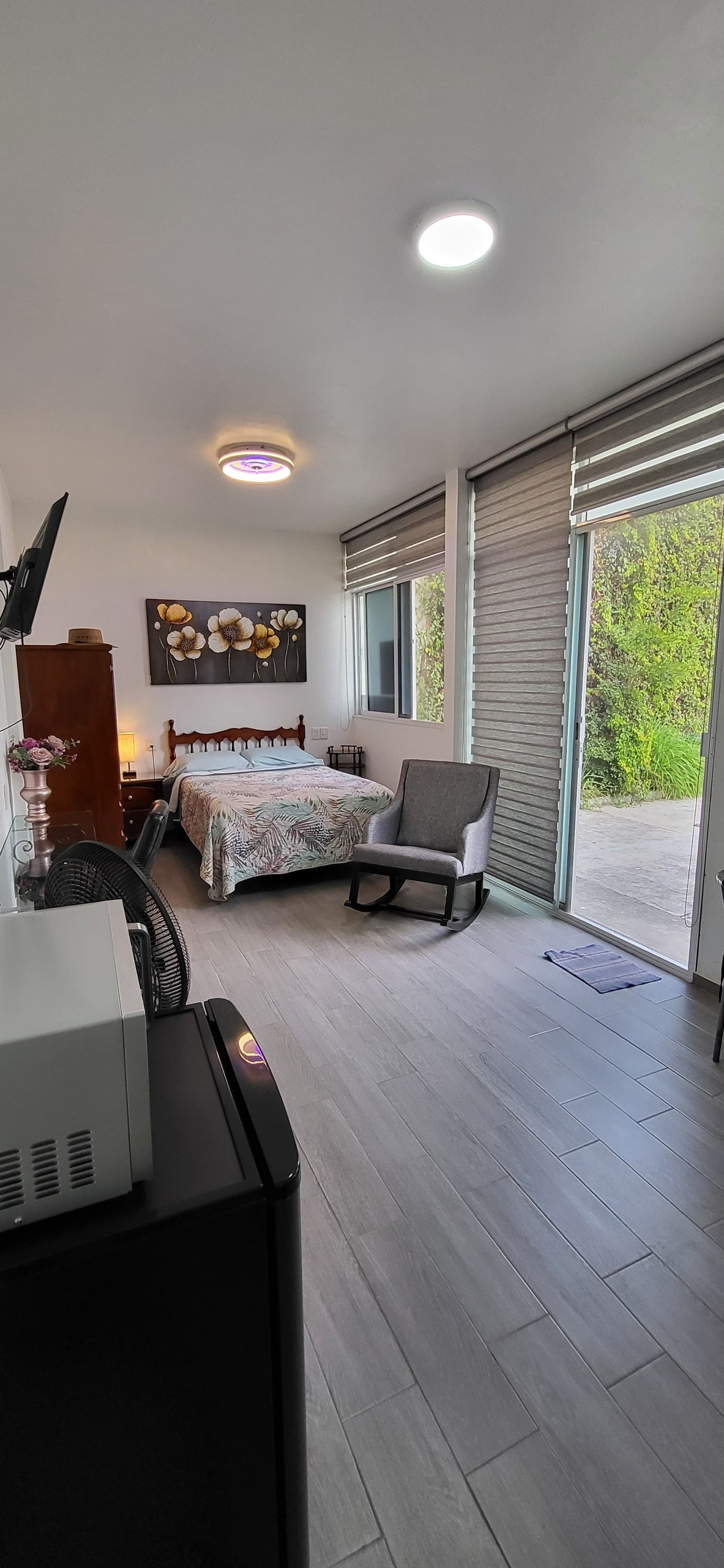 Disfruta de la comodidad de este "Estudio" tranquilo y céntrico. Ubicado en la parte trasera de mi casa con entrada independiente. Equipado con aire acondicionado, WiFi, Smart TV, además cuenta con estacionamiento cerrado y gratuito dentro de las instalaciones. Hay un patio grande y 2 terrazas compartidas en donde sí se permite fumar. La cama es tamaño matrimonial.