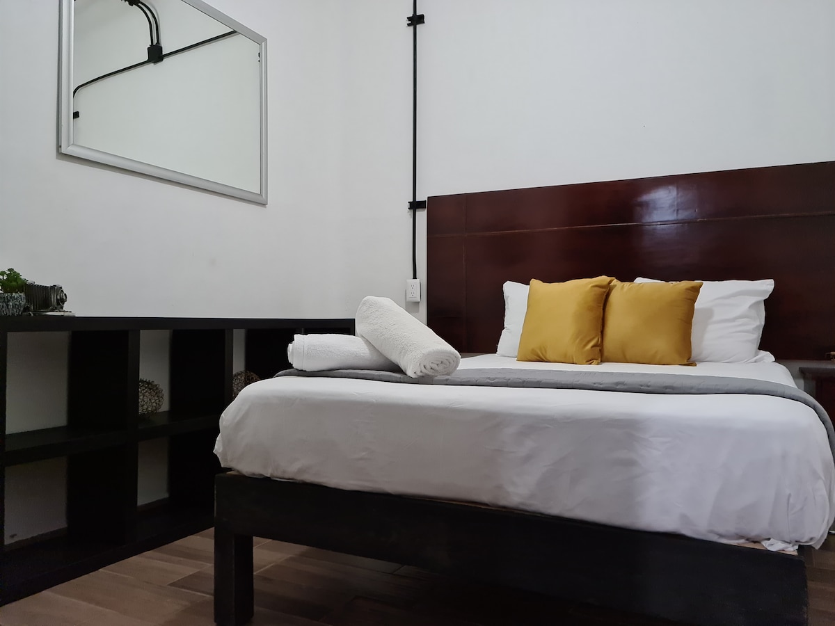 Habitación privada con baño, cómoda, amplia y ventilada, aire acondicionado, Wifi, con un espacio agradable para tomar alimentos y trabajar. Muy cerca de Glorieta Chapalita y Expo Gdl, así como de avenidas importantes, Zona de restaurantes , boutiques y estaciones de bicicletas. Excelente ubicación