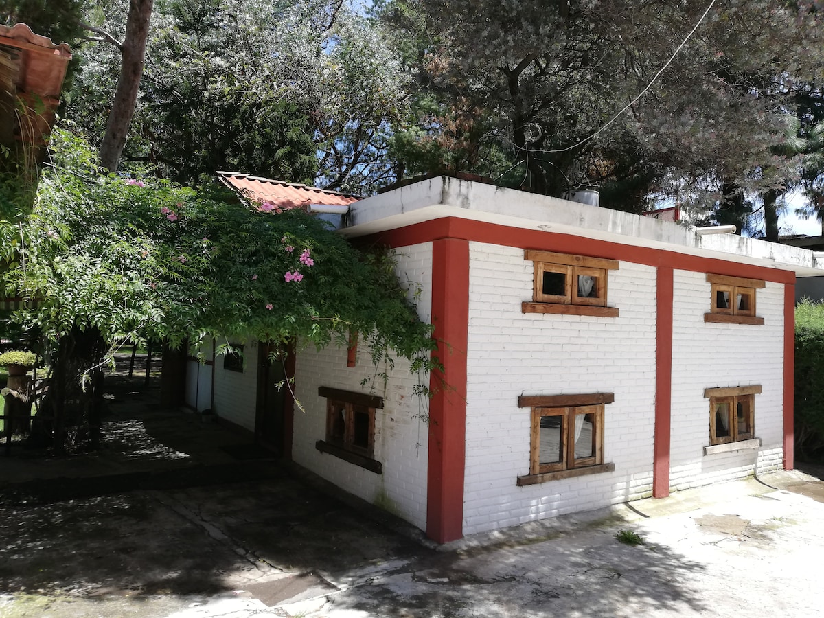 Un espacio bello y acogedor para crear recuerdos en familia o en pareja, rodeados de calma y naturaleza. 2 habitaciones: Hab. 1: 1 cama individual + litera (individual y matrimonial) Hab. 2: 1 cama individual + 1 matrimonial 1 baño completo con tina y 2 regaderas + medio baño TV en cada habitación Chimenea Juegos de mesa y libros 2 salas, comedor y cocina equipada Jardín amplio con árboles frutales Asador y calentador exterior Ideal para descansar y disfrutar sin prisas Wifi de gran velocidad