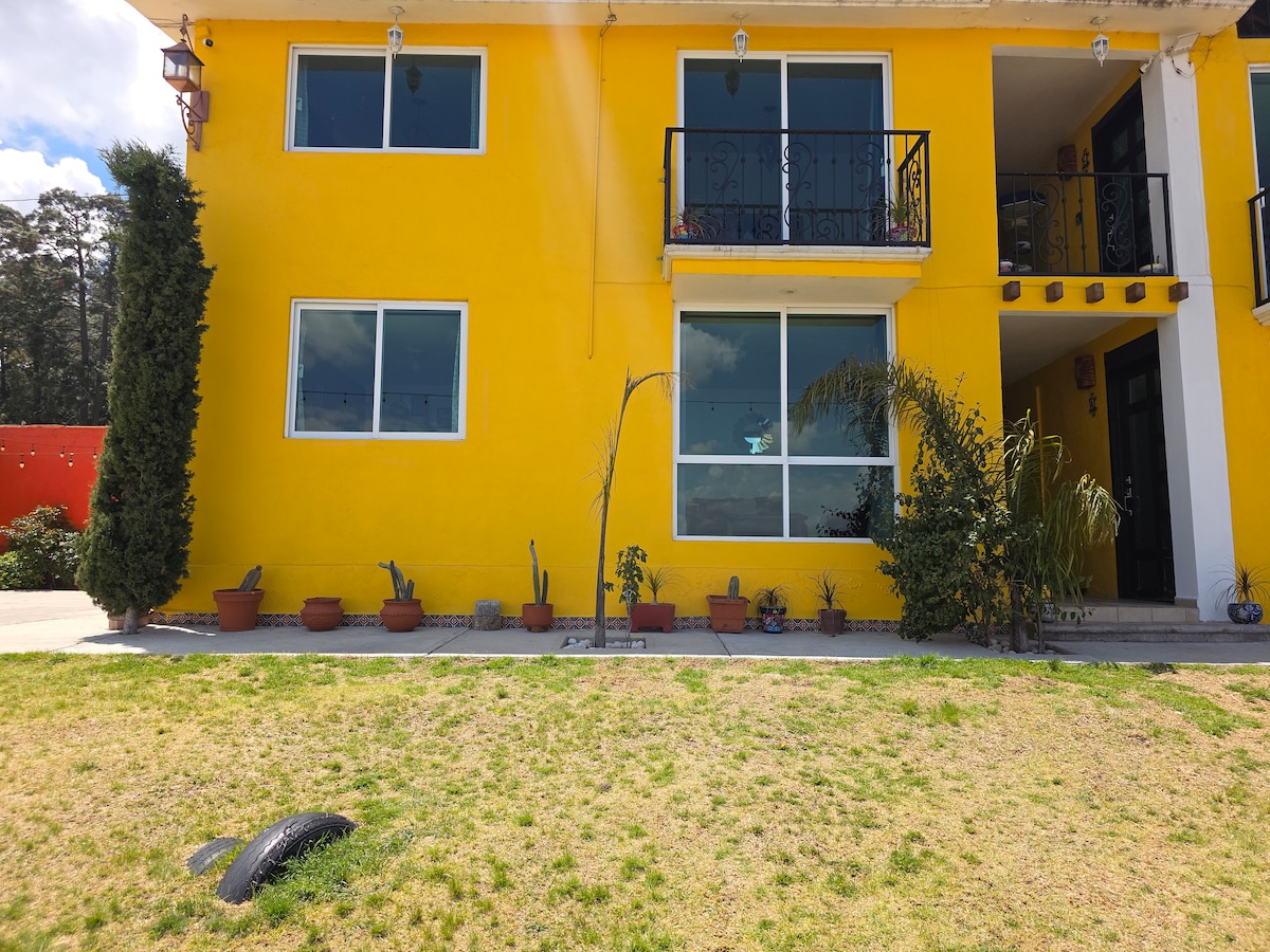 Desconecta de tus preocupaciones en este espacio tan amplio y sereno. Es una cabaña de campo, perfecta para reuniones familiares, con amigos y con excelente espacio para acampar; gracias a sus amplios jardines. se encuentra a 15-20 min aprox en auto del centro de Tlaxcala , cuenta con una alberca al aire libre (no climatizada) perfecta para hacer una carne asada!!