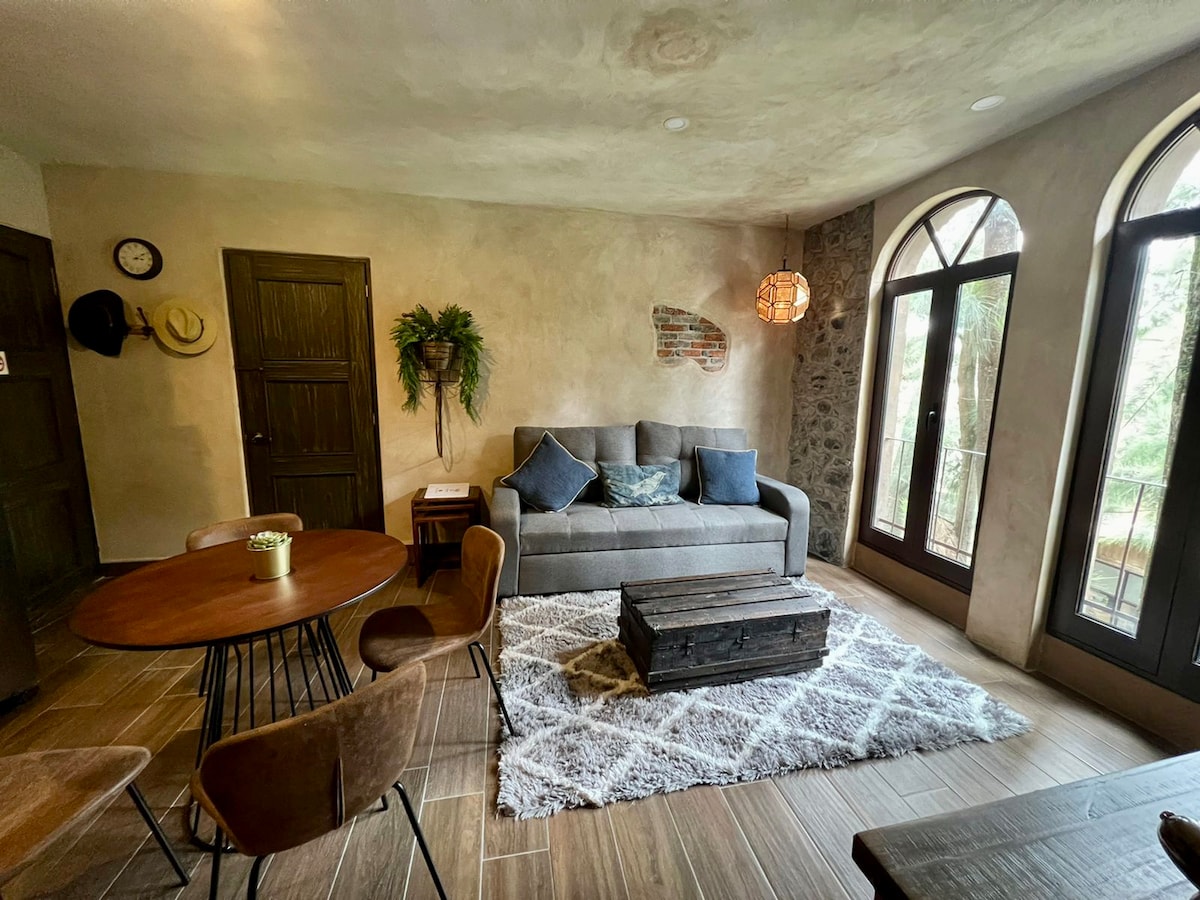 Este loft tiene una ubicación única: Se encuentra a solo 15 pasos de la plazuela principal donde se encuentran los mejores restaurantes de Val Quirico. Son 109 m2 divididos en 2 pisos. Planta baja cuenta con sala de t.v. con wifi cocina con barra. Planta alta recamara con cama king size, baño completo con vestidor y balcón. El sofá cama de la planta baja acomoda a un huésped (pueda causar tarifa adicional).