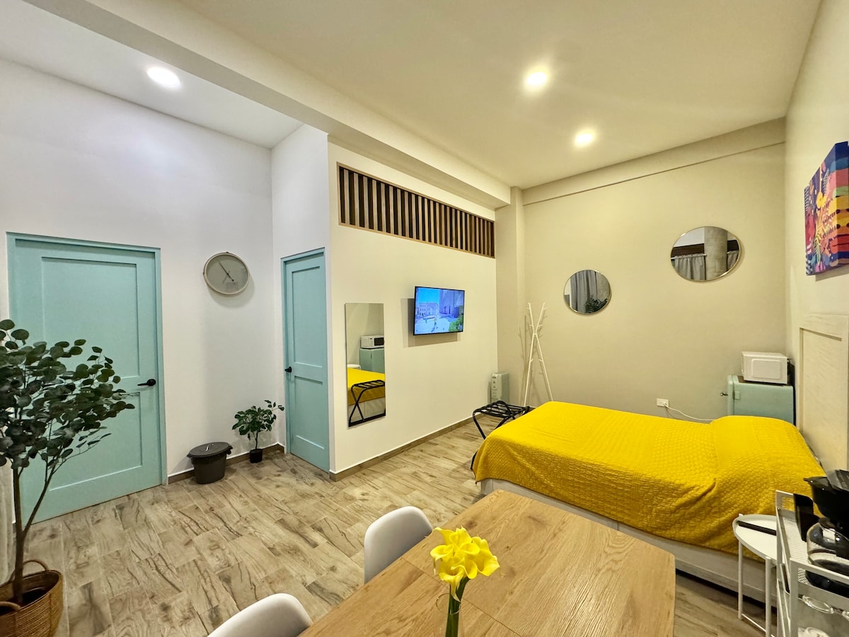 En este loft te sentirás en un hotel 5 estrellas, perfecto para dos personas muy romántico y aesthetic! Contamos con una gran terraza con un jacuzzi y todo lo necesario para impresionar a tu pareja! Una mini cocina equipada para preparar unos drinks y una tabla de quesos para una velada romántica! Contamos con lavandería en el edificio que funciona bajo llave.