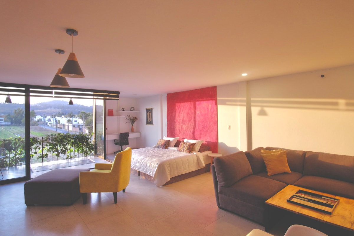 If you are looking for a place with good interior design and no noise to spend a short or long season, this is your best option, the Zapotecas hills and Popocatépetl will remind you of it at all times. PausaYoga is in Loft 1 and you will have 50% off, check out their IG. Parking 1 car, CCTV and terrace with BBQ. The area has shops and about 8 blocks from the pyramid, PET Friendly, Projector and 100Mb Wifi. For stays of more than 10 days we include free deep cleaning every week.