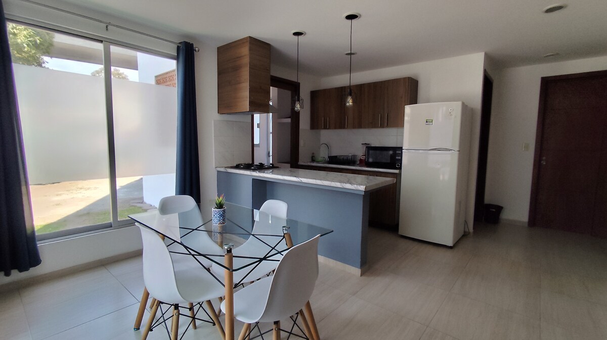 Este lugar único tiene su propio estilo. Departamento en la zona más exclusiva y moderna de Puebla con vista panorámica al Puebla Moderno, en un espacio privado acogedor a unos pasos del centro comercial, Museo Barroco, Parques, entre otros. Disfruta tu estancia con todos los espacios dinámicos sanitizados para tener un momento agradable, así como lo necesario para poder disfrutar y relajarte en estancias cortas o largas. Haz uso de nuestras exclusivas amenidades pensadas en tus necesidades.