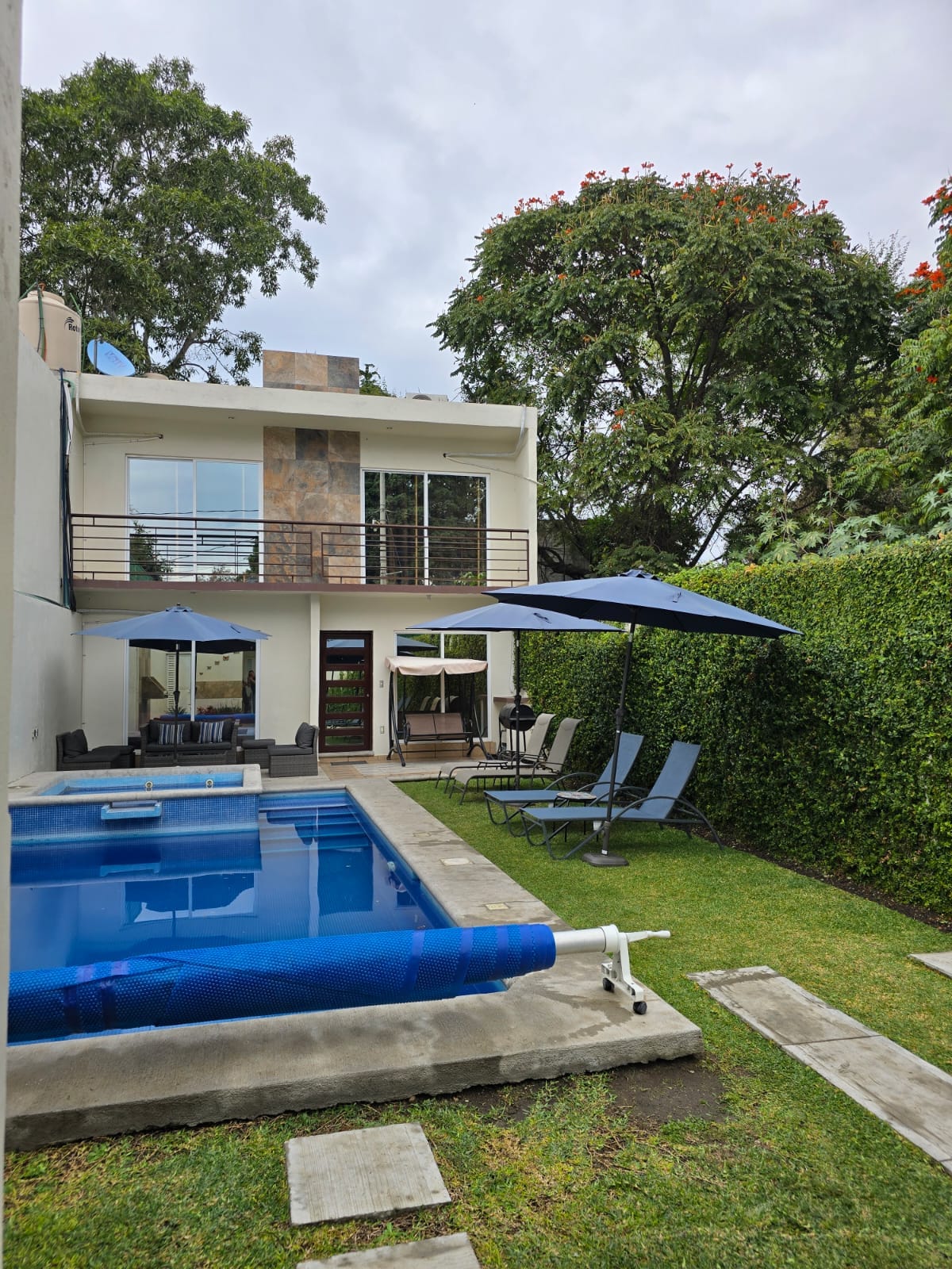 Casa colonial moderno nueva muy amplia con 3 recamaras, cocina equipada, amplia terraza, alberca climatiza con PANELES SOLARES. CALDERA OPCIONAL. masaje con dos baños y medio. Amplio estacionamiento hasta para 4 automoviles, no se aceptan invitados adicionales. 10 minutos caminando al ex-convento Agustino del pueblo . asador para carnes disponible. Hamacas y columpio. AHORA TAMBIEN CONTAMOS CON DETECTOR DE HUMO Y MONOXIDO DE CARBONO.