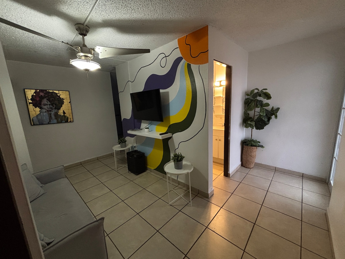 Apartamento hermoso de Studio grande con una cama Full y dos Twin, con piscina privada pequeña , horario de la piscina 8:00am a 9:30pm (esa área debe estar cerrada a las 9:30pm).Parking gratuito, wifi y A/C .estupendo para una escapada romántica. A pasó de la playa , restaurante, casino, shopping , Panaderías Lemy, Lancha de Cataño etc.