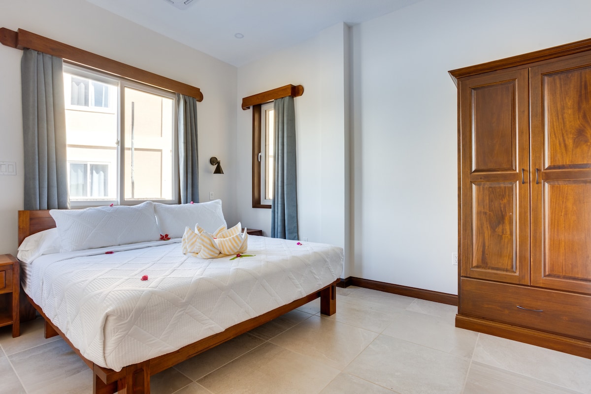 This spacious 2,000 sq. ft. villa offers stunning views of the Caribbean Sea and our 200-ft pier from a large private veranda. It features a full kitchen with stove, fridge, microwave, and dishwasher, plus central AC, TV, internet, and washer/dryer. Both bedrooms include en-suite bathrooms for added comfort. This villa has King bed in the Master and twin beds in the second bedroom. Some villas may require stair access. For preferences or special requests, contact us.