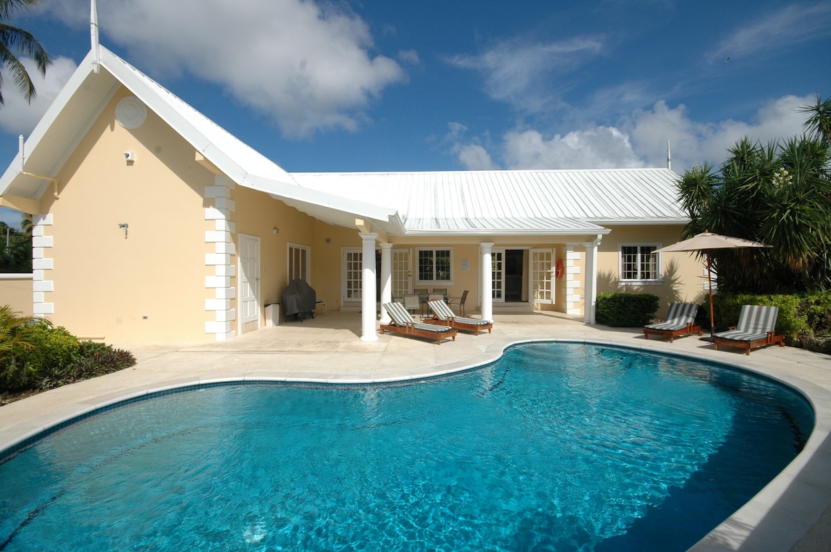Introduction This beautifully built wooden lodge is situated on a hillside off the quiet Scarborough to Plymouth road. It looks out over mature trees across the valley to the green hills on the other side, and at the rear of the premises there’s a garden laid to lawn with pretty shrubs, at the top of which is a chain link fence and a line of palms giving privacy to the house, its garden and pool.