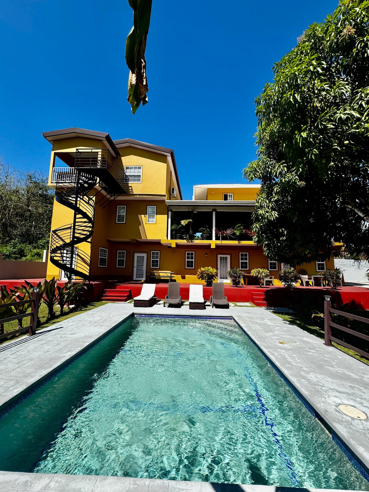 This place is perfect for a small or relatively large group. It is equipped with a fully-functional modern-styled kitchen, a spacious communal area, a family-friendly pool and beautiful garden. The place is situated in a secured gated community in lively Crown Point! We are also located close to the airport (5 mins drive), beaches (e.g. Pigeon Point - the #1 attraction in Tobago!), restaurants, bars, shops, grocery stores and ATMs (bank) for all your needs and amenities.