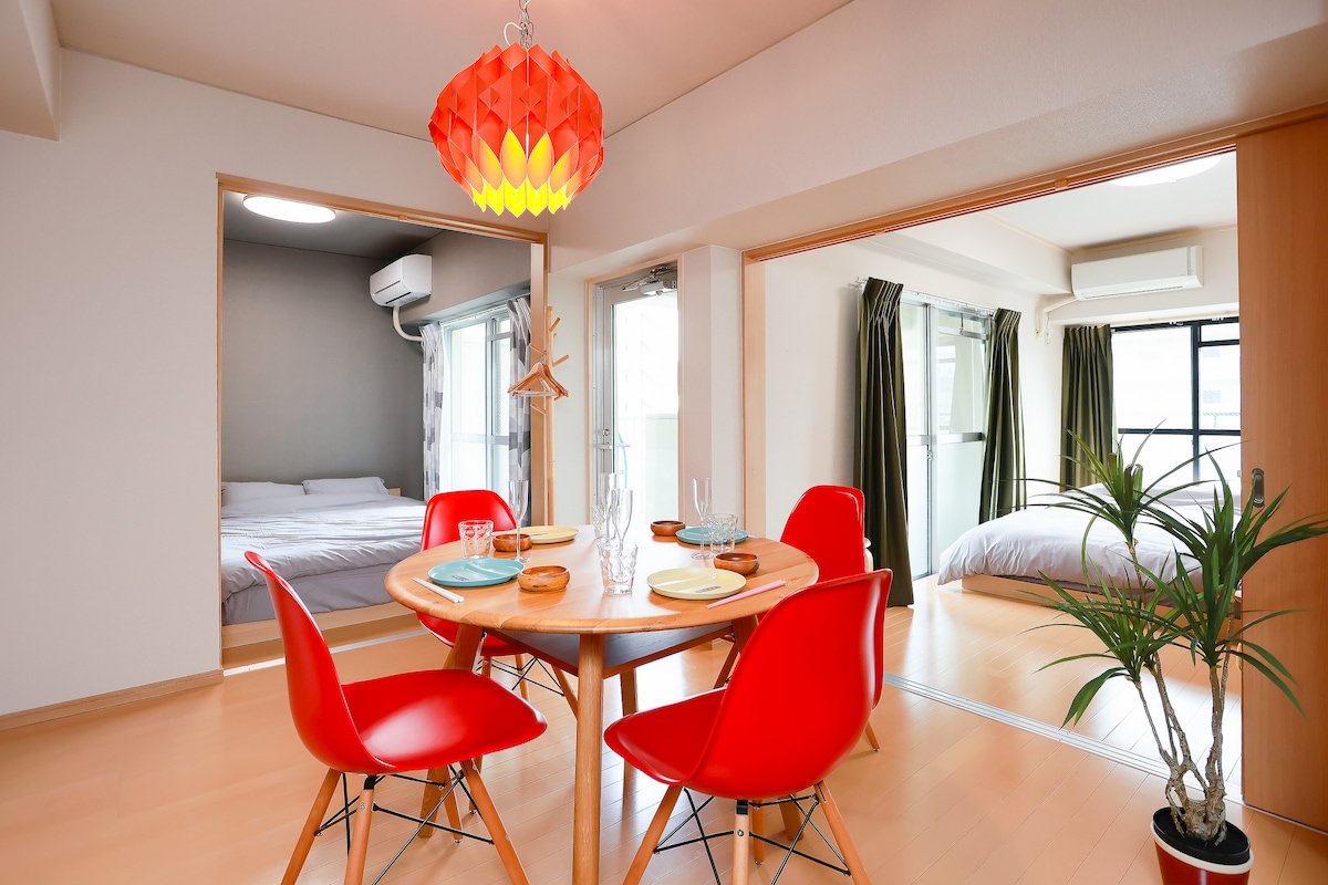 【NEW Open】小倉エリア|赤いチェアが映えるナチュラルモダンルーム|最大4名宿泊