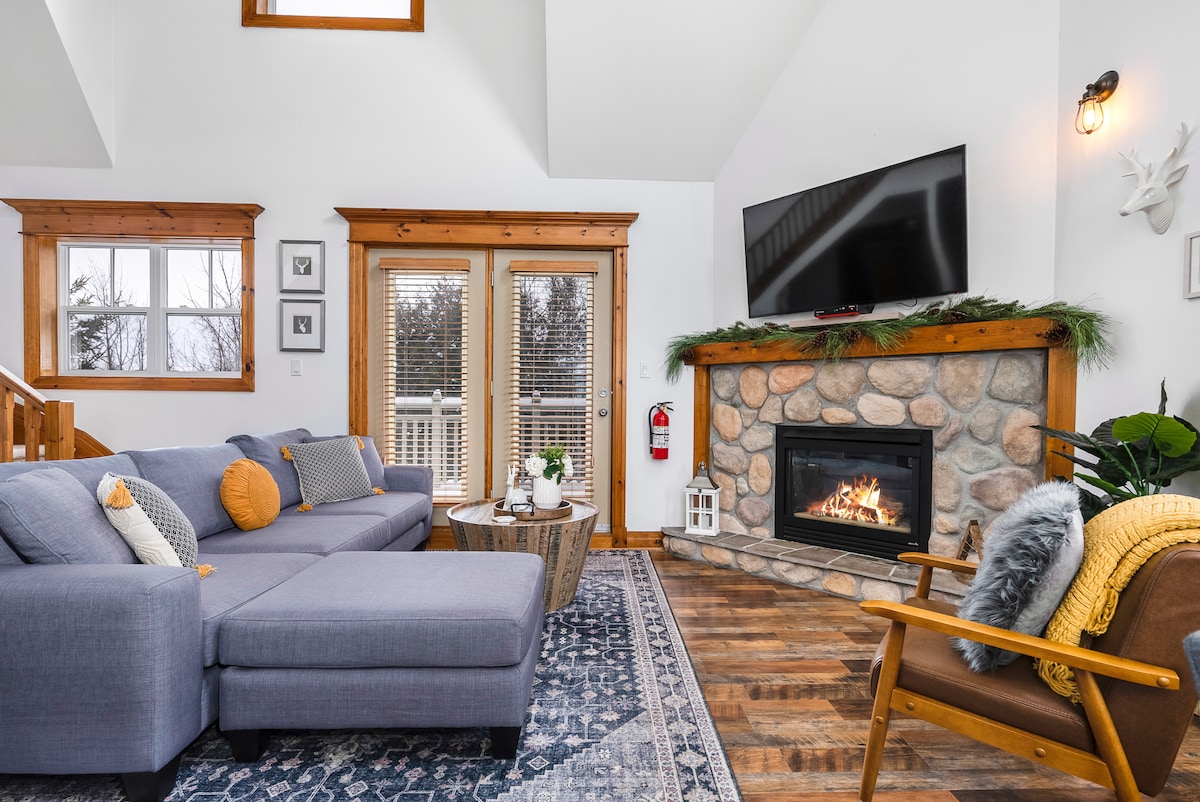 Welcome to Apres Blue at Blue Mountain! Unbeatable location @ 110 Fairway Court, only a 5 minute walk to Blue Mountain Village, Ski lifts & Monterra Golf Course. Professionally decorated ground floor unit with full kitchen, gas fireplace, high speed internet, walk out private patio with outdoor dining area, private gas BBQ and shared seasonal pool. This spacious ground floor, 2 bedroom, 2 full bathroom end unit townhouse has everything you need to enjoy your stay! License #LCSTR20230000084