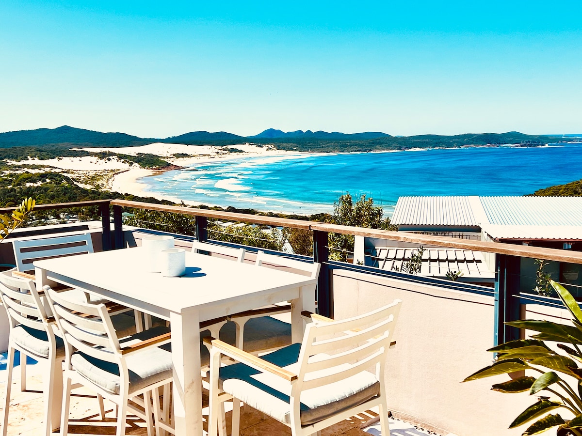 This unique place has a style of its own. Modern beach industrial, styled with love. Perfect for couples, families and friends offering one of the best amenities in Fingal Bay. Not only relaxing and peaceful but perfect for a few days away ...and then you will want to rebook for longer! This property is unique for its modern style, relaxed atmosphere and privileged views. Just try and buy -it won't let you down. Please note, the listing is the bottom level of the house only.
