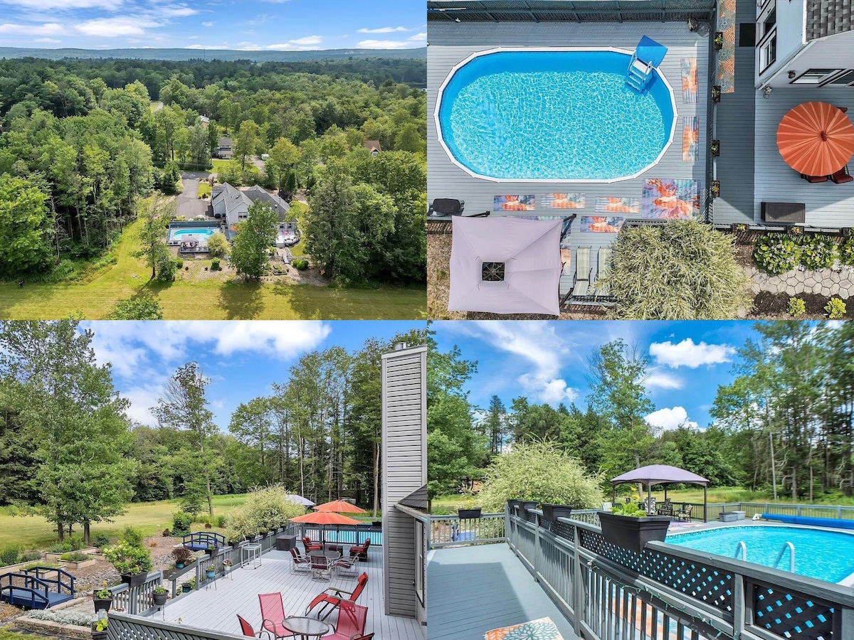 现代波科诺度假屋:泳池,靠近滑雪和徒步旅行
