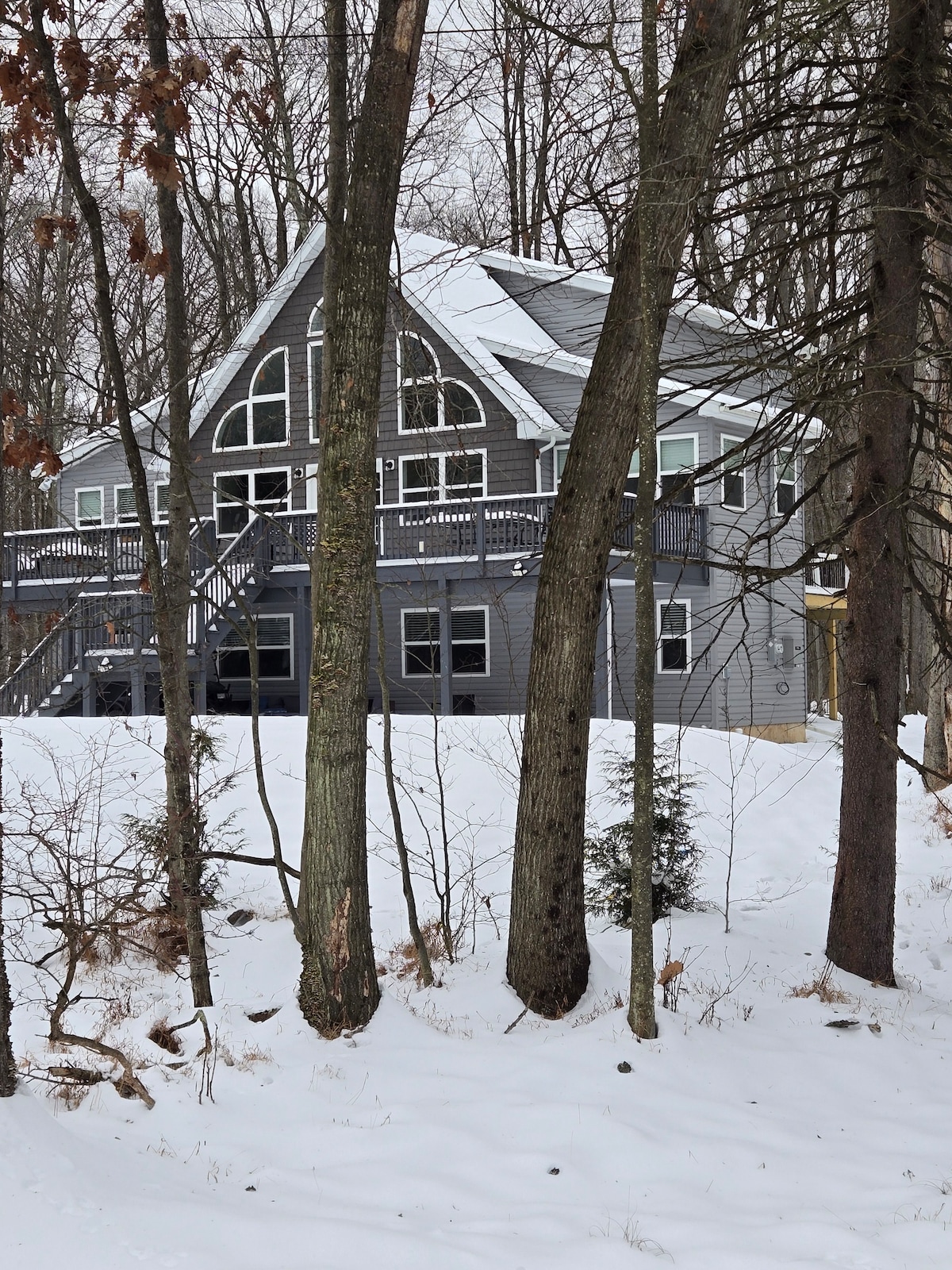 A stunning chalet ideally situated in the Pocono mountains. Your destination for a weekend escape or a longer stay all year round! Outside one can enjoy a natural setting in a beautiful 1-acre private wooded property, hot tub, two fire pits, a deck for morning coffee, or a delicious BBQ. Our home offers a tranquil interior atmosphere and home is conveniently located near all Pocono Mountains' seasonal activities. Whether you want to unwind or recharge, our home provides the perfect retreat.