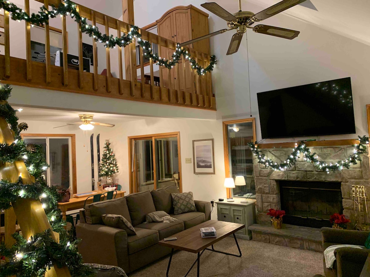 🎱 Pool table 🍽️ Dining table seats 16 🥅 Air hockey 🔥 Wood burning fireplace 🏓 Ping pong 🥩 Weber gas grill ⚽️ Foosball 🏡 Sprawling 3,000 sqft 🚴♂️ Peloton 🪵 Firepit in backyard ★ 6-person, aromatic cedar barrel sauna ★ Separate dining room & living room ★ Mudroom for your golf & ski gear ★ Sunny front deck with forest views ★ Secluded 2 acre plot ★ 4 bedrooms + sleeping loft ❄️ At the gates of Jack Frost Ski Resort ❄️