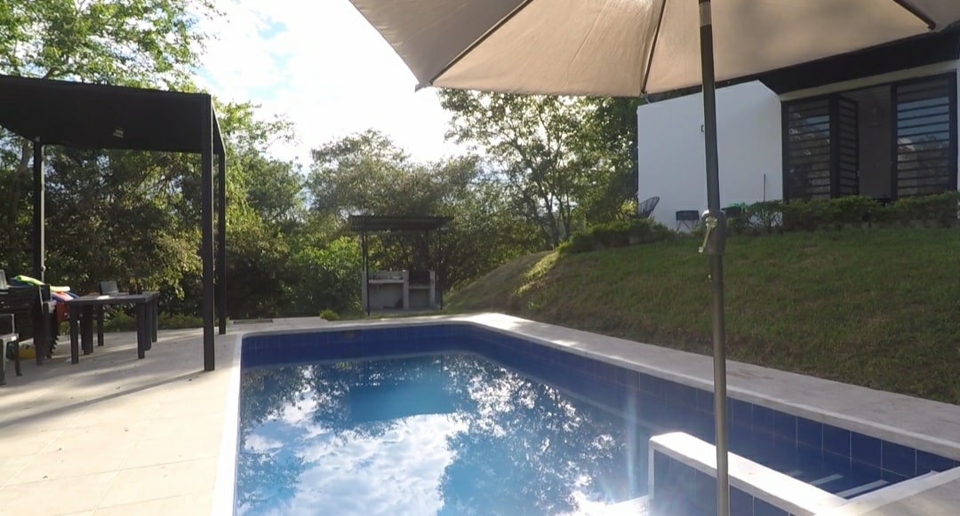 casa con amplios espacios verdes ,piscina, juegos , fonda de asados al aire libre , caminatas a mucha naturaleza Disfruta del encantador entorno de este romántico lugar en la tranquila vida campestre de fasil asceso en mejor clima de colombia rodeado de mucha vejetacion y seguridad