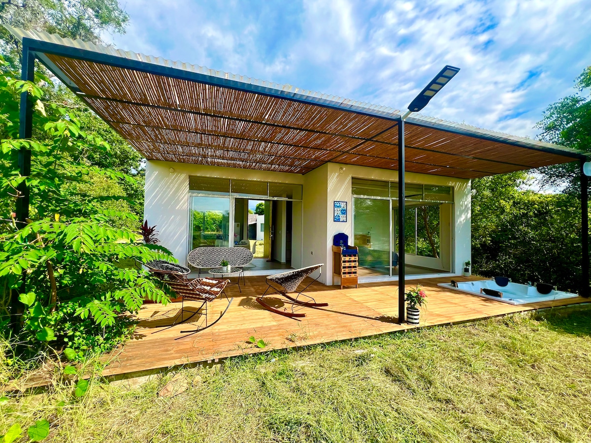 Cabaña completamente nueva, todo para estrenar de estilo mediterráneo diseñada especialmente para parejas,ubicada en una Tranquíla zona rural , la casa cuenta con aire acondicionado en la habitacion y ventilador en el área de la cocina para tu comodidad, además de una cocina equipada con su menaje completo para que prepares tus comidas favoritas. Desde la habitacion tendrás una vista espectacular hacia la naturaleza el Jacuzzi privado es perfecto para relajarse y compartir un momento especial.