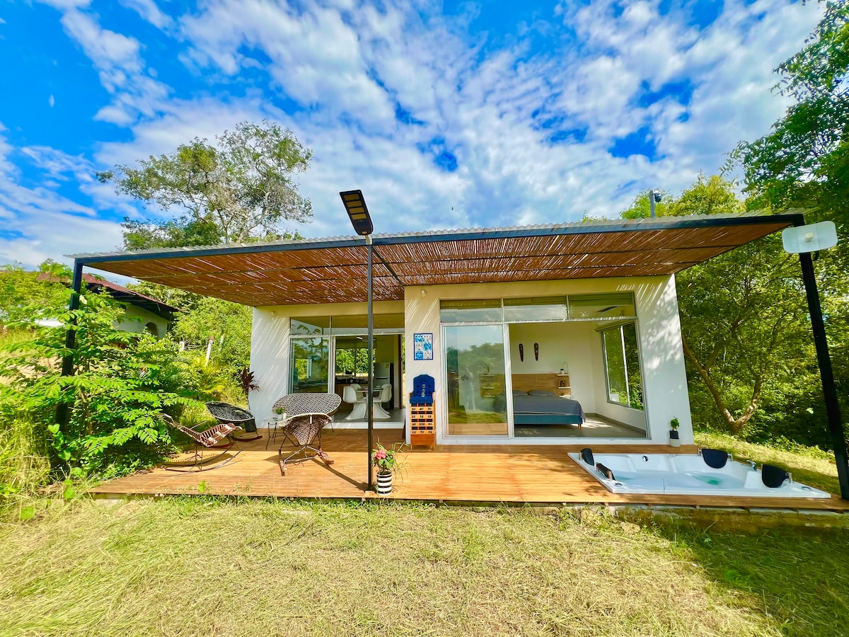 Cabaña completamente nueva, todo para estrenar de estilo mediterráneo diseñada especialmente para parejas,ubicada en una Tranquíla zona rural , la casa cuenta con aire acondicionado en la habitacion y ventilador en el área de la cocina para tu comodidad, además de una cocina equipada con su menaje completo para que prepares tus comidas favoritas. Desde la habitacion tendrás una vista espectacular hacia la naturaleza el Jacuzzi privado es perfecto para relajarse y compartir un momento especial.